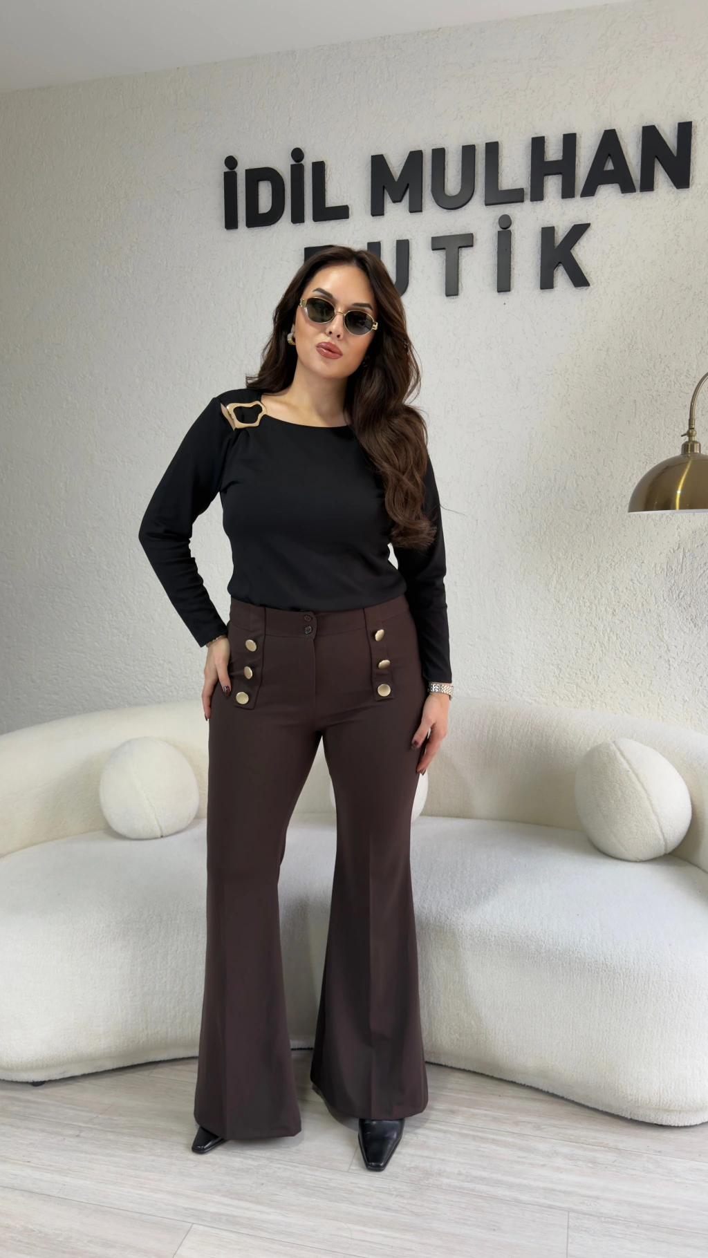 Acı Kahve Gold Düğmeli İspanyol Paça Pantolon