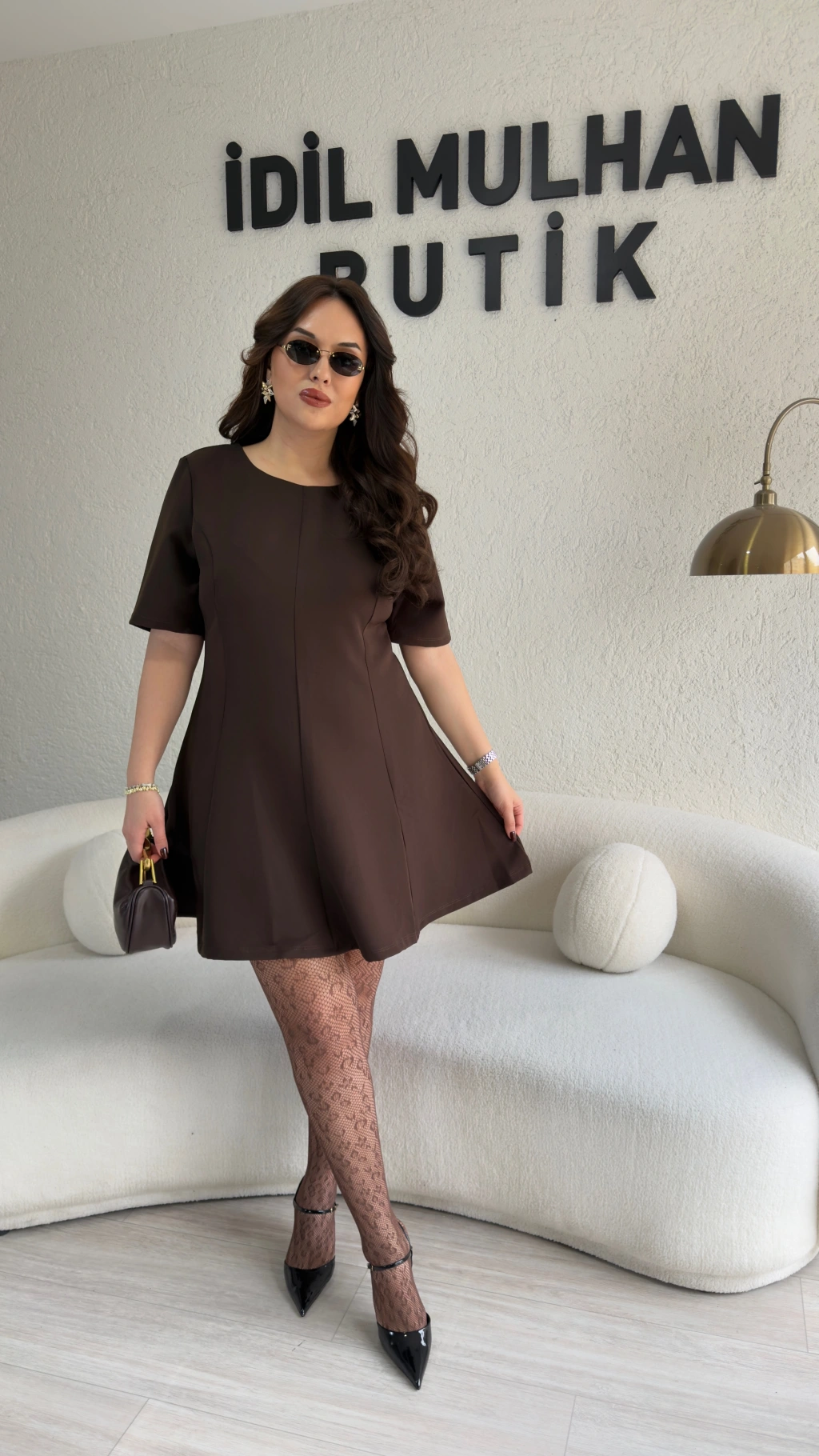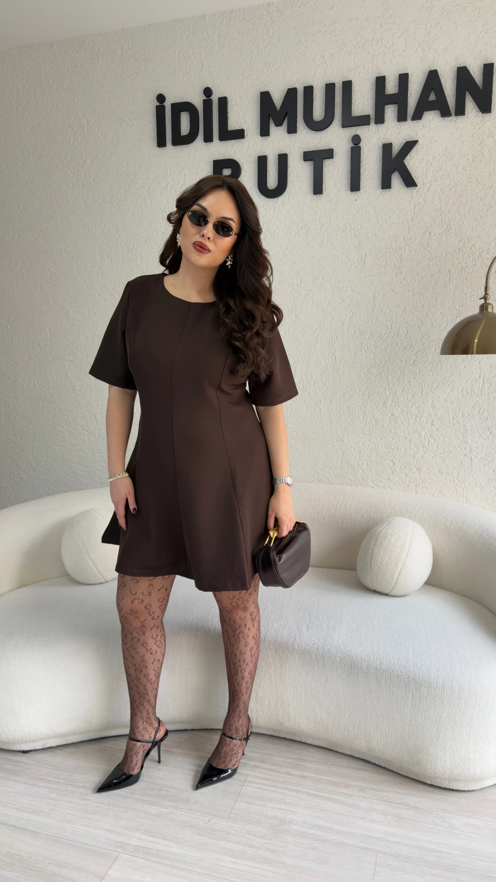 Acı Kahve Gold Fermuarlı Oysh Kumaş Elbise