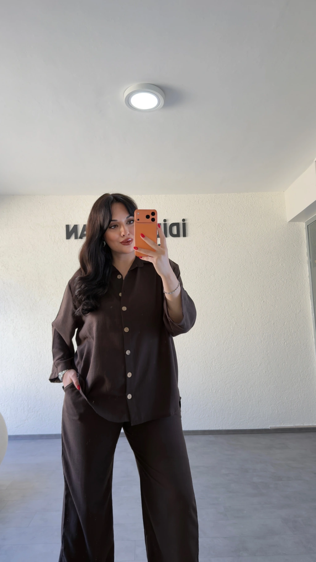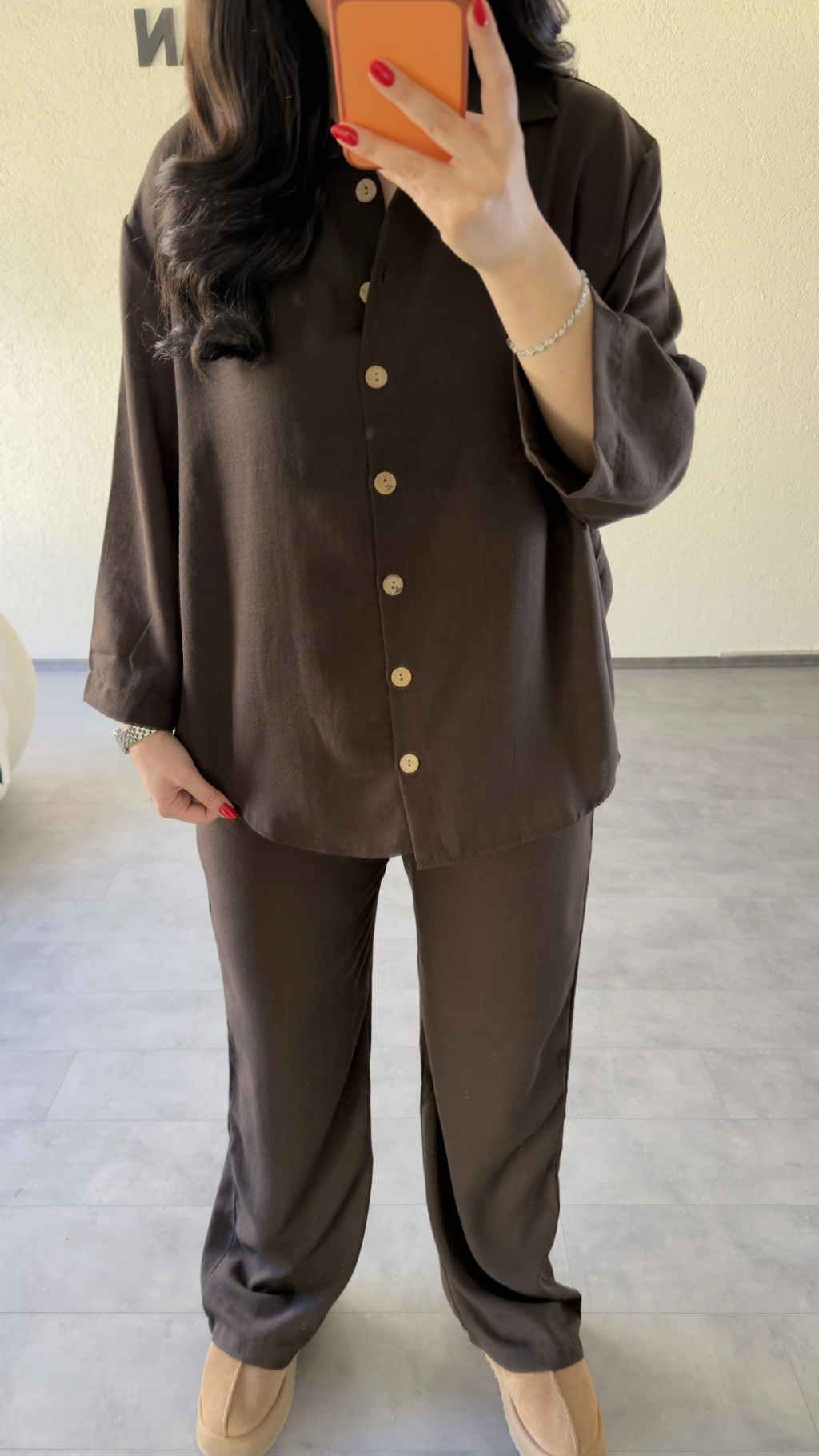 Acı Kahve Rahat Kesim Gömlekli Pantolon Takım