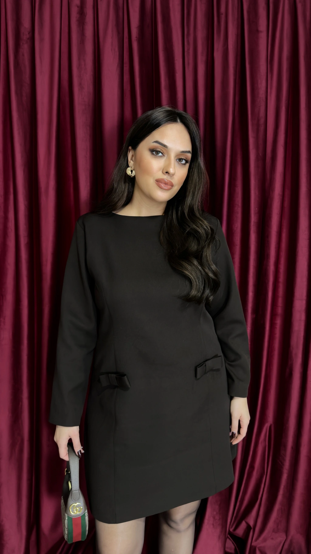 Bordo Likralı Süs Cepli Elbise