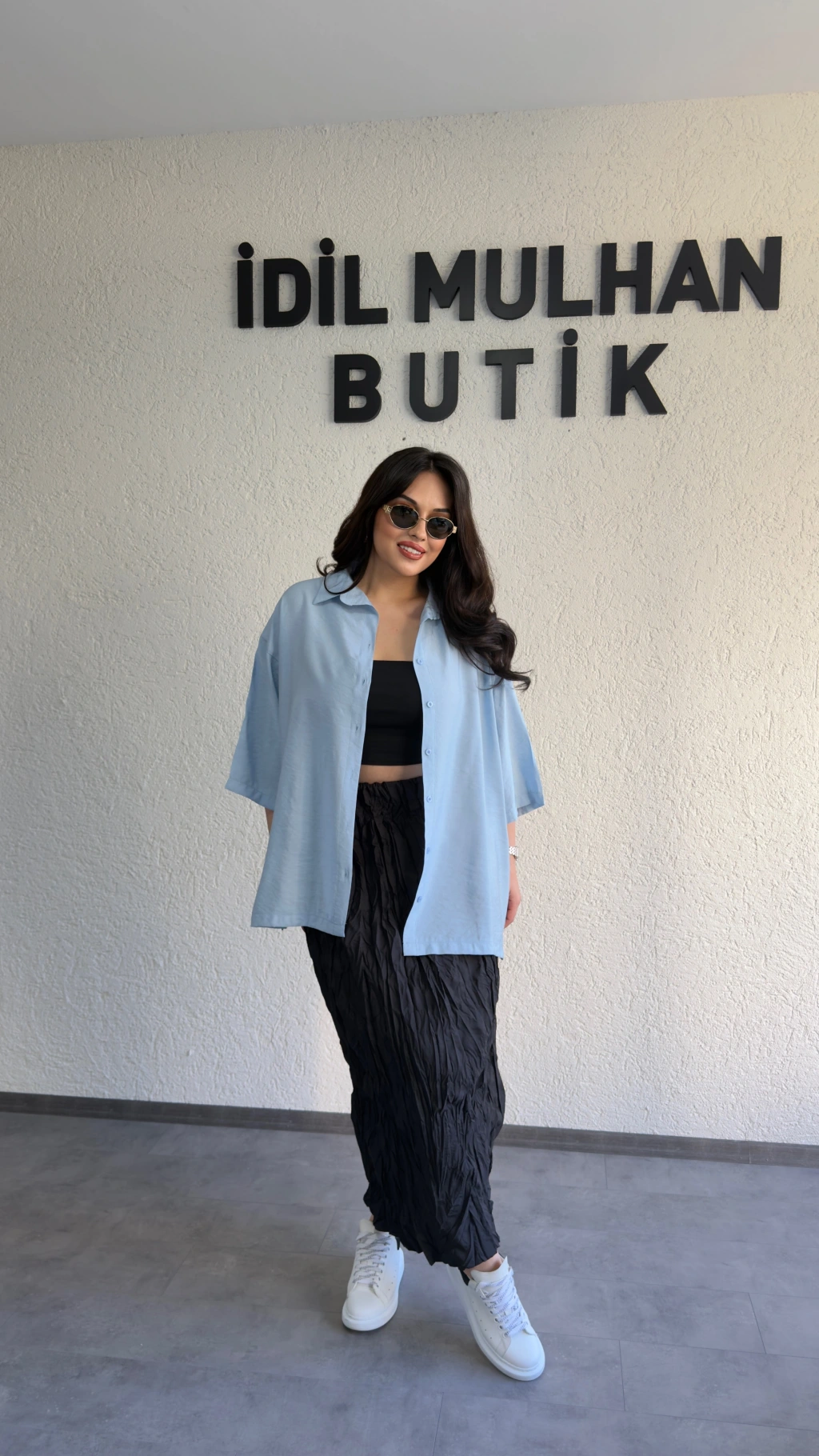 Siyah Günlük Rahat Kalıp Gömlek