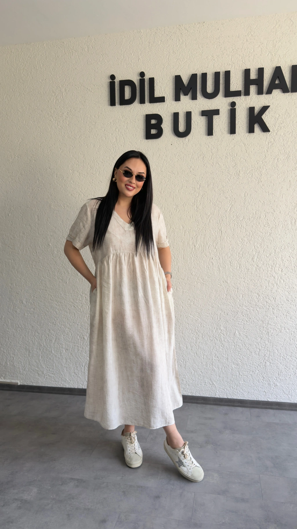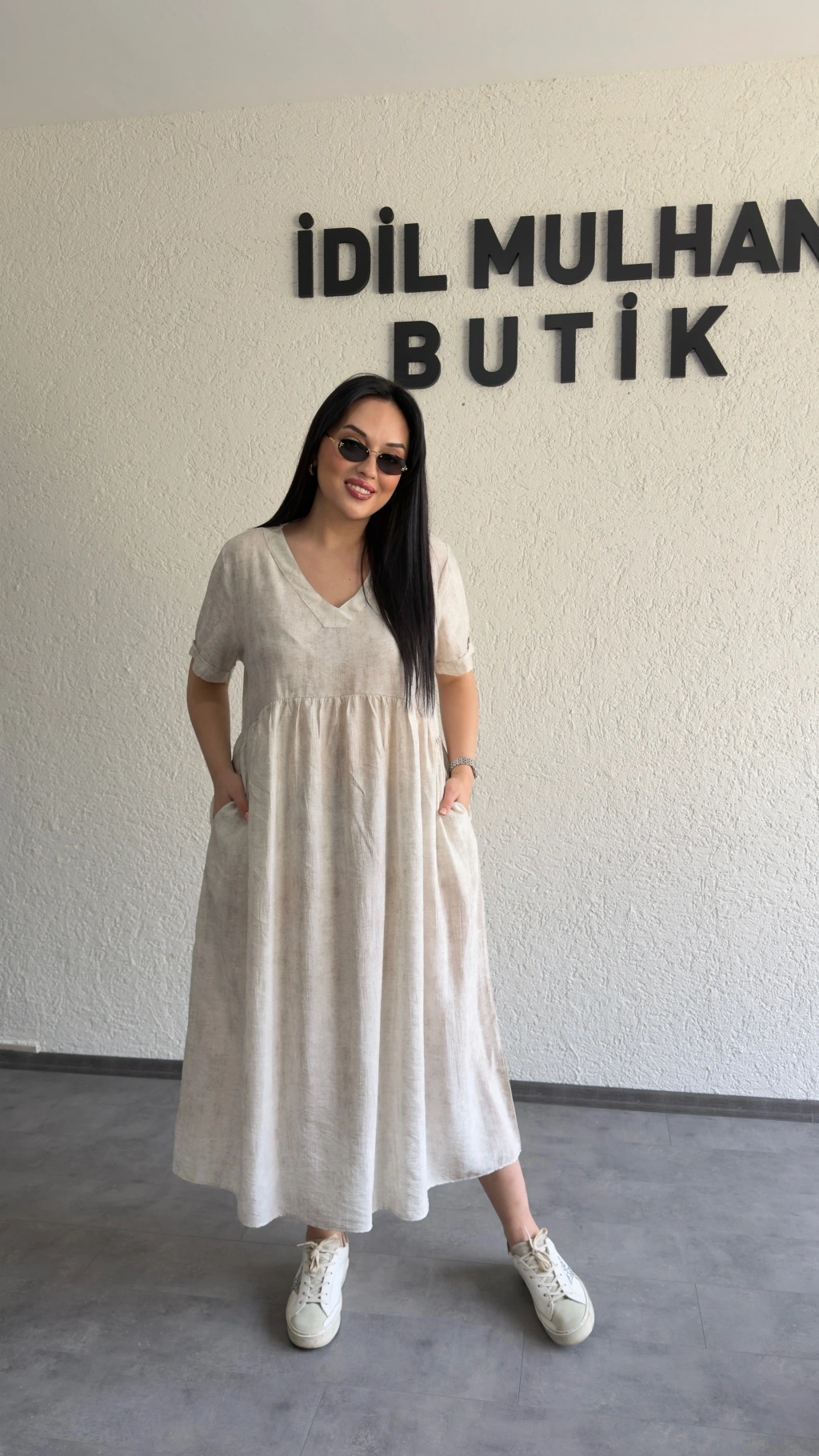 Kahverengi Kruvaze Yaka Kat Kat Elbise
