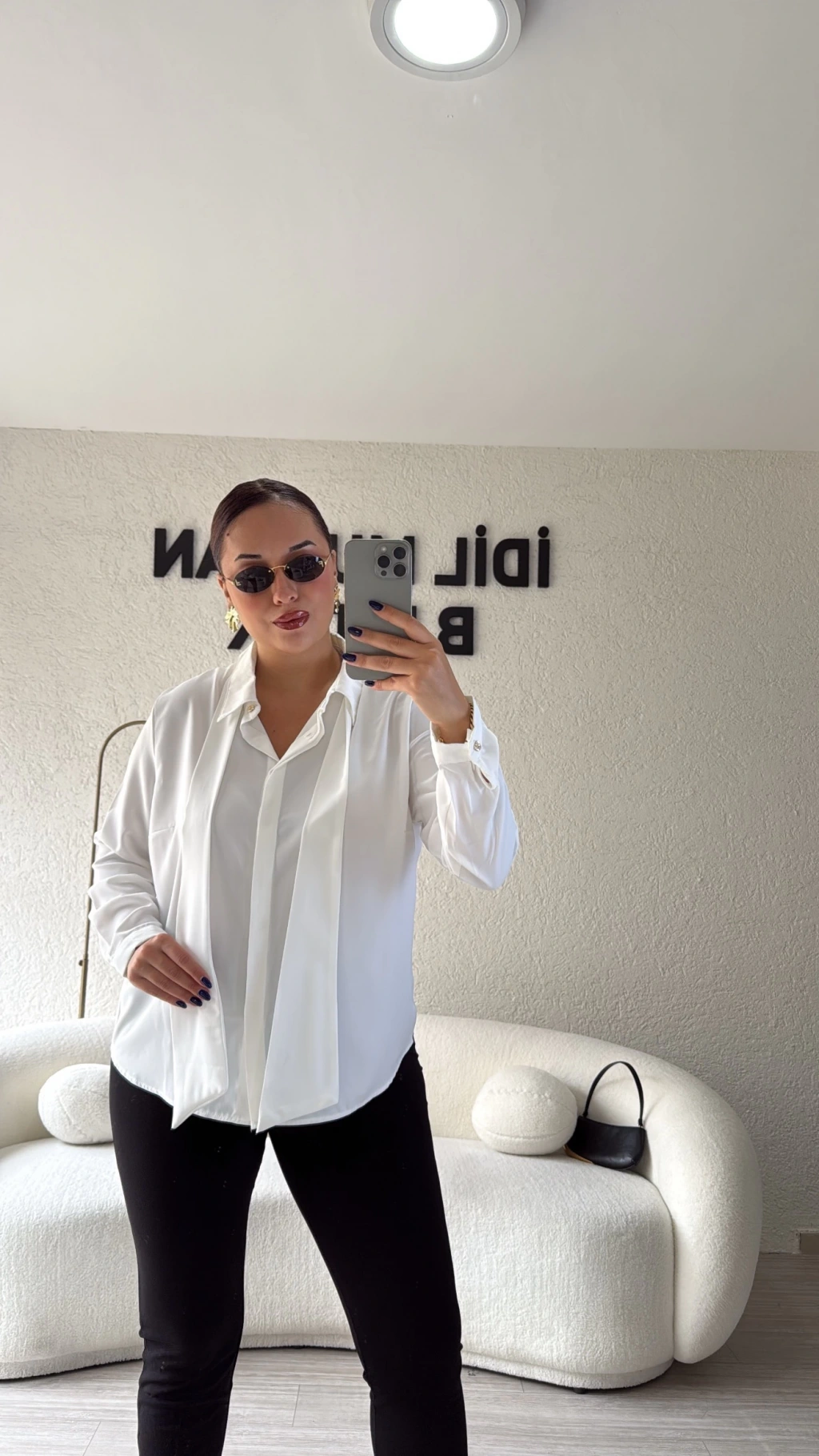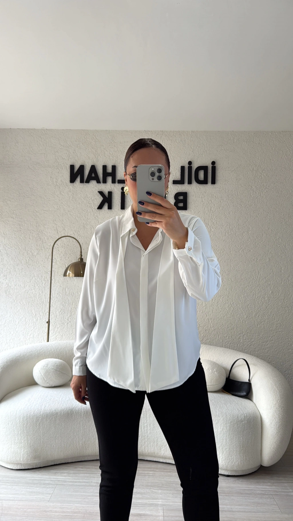 Beyaz Çıkarılabilir Fularlı Gömlek
