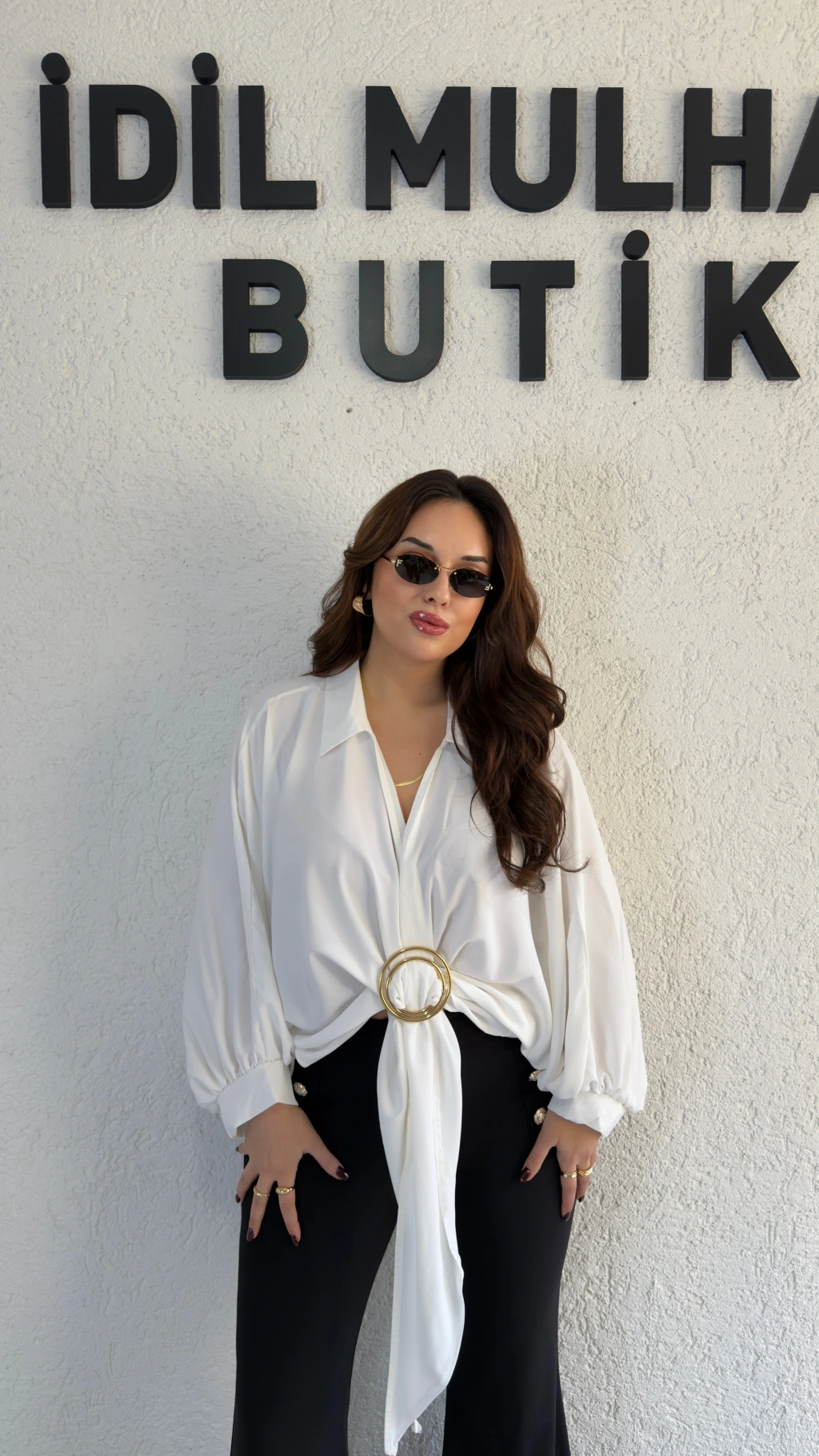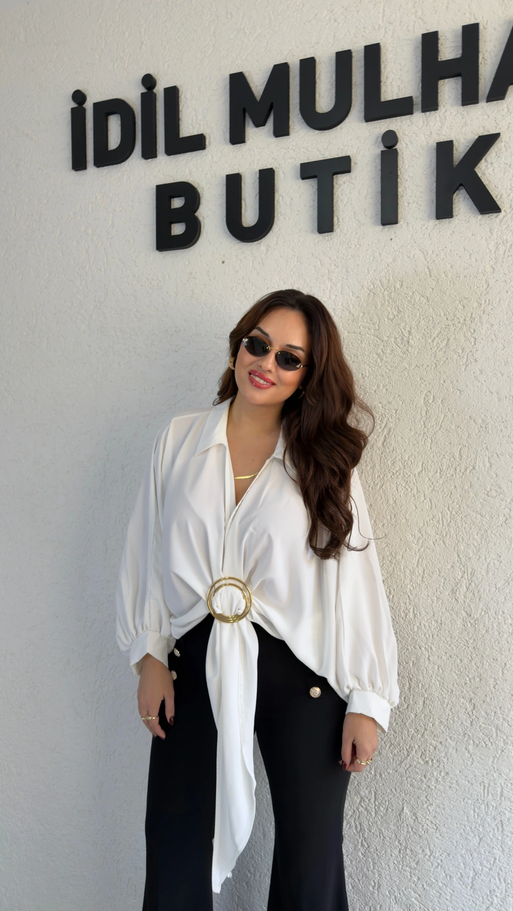 Beyaz Gold Tokalı Bağlamalı Bluz