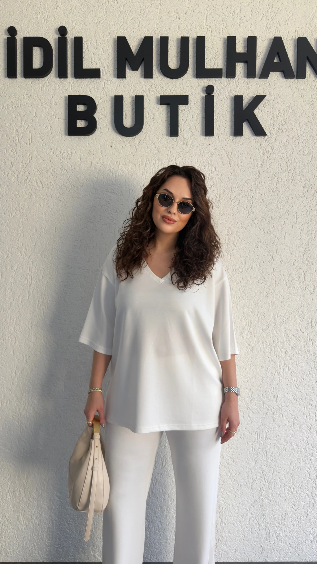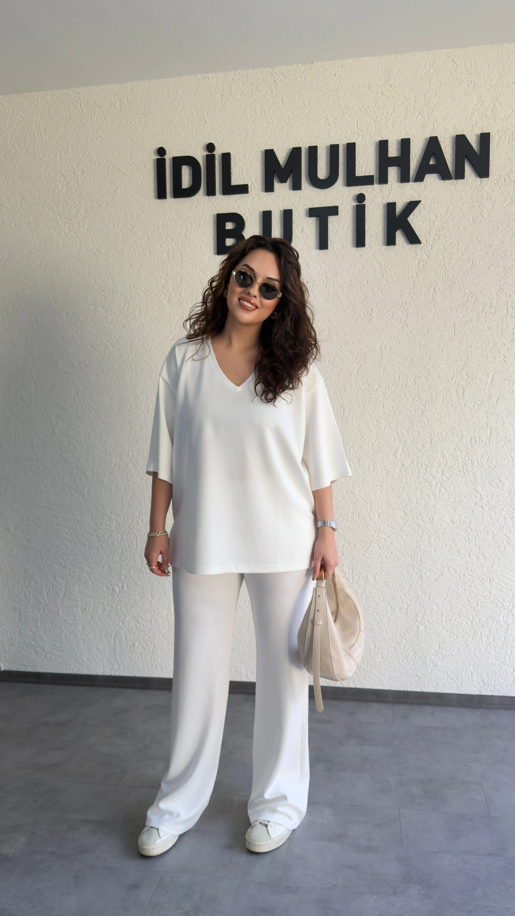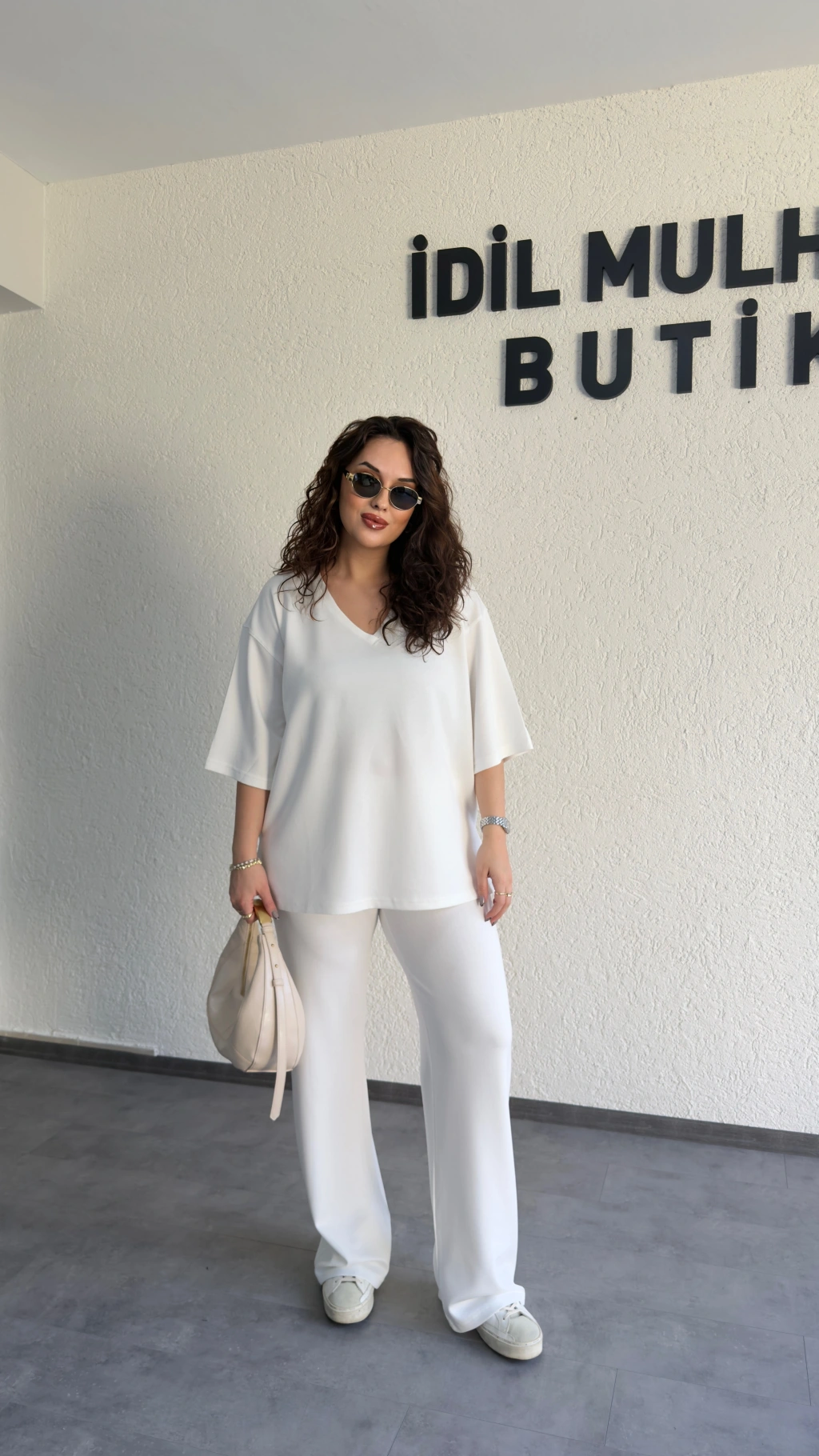 Beyaz Oysh Kumaş V Yaka Salaş Takım