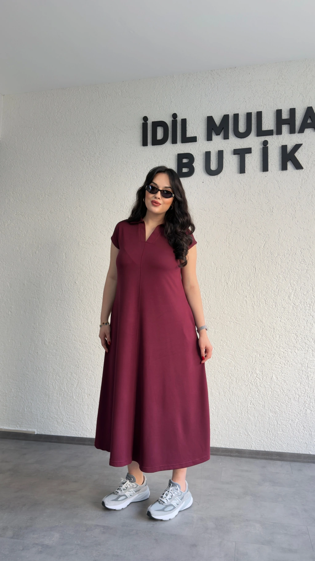 Bordo Yakası Düğme Detaylı Lacoste Elbise