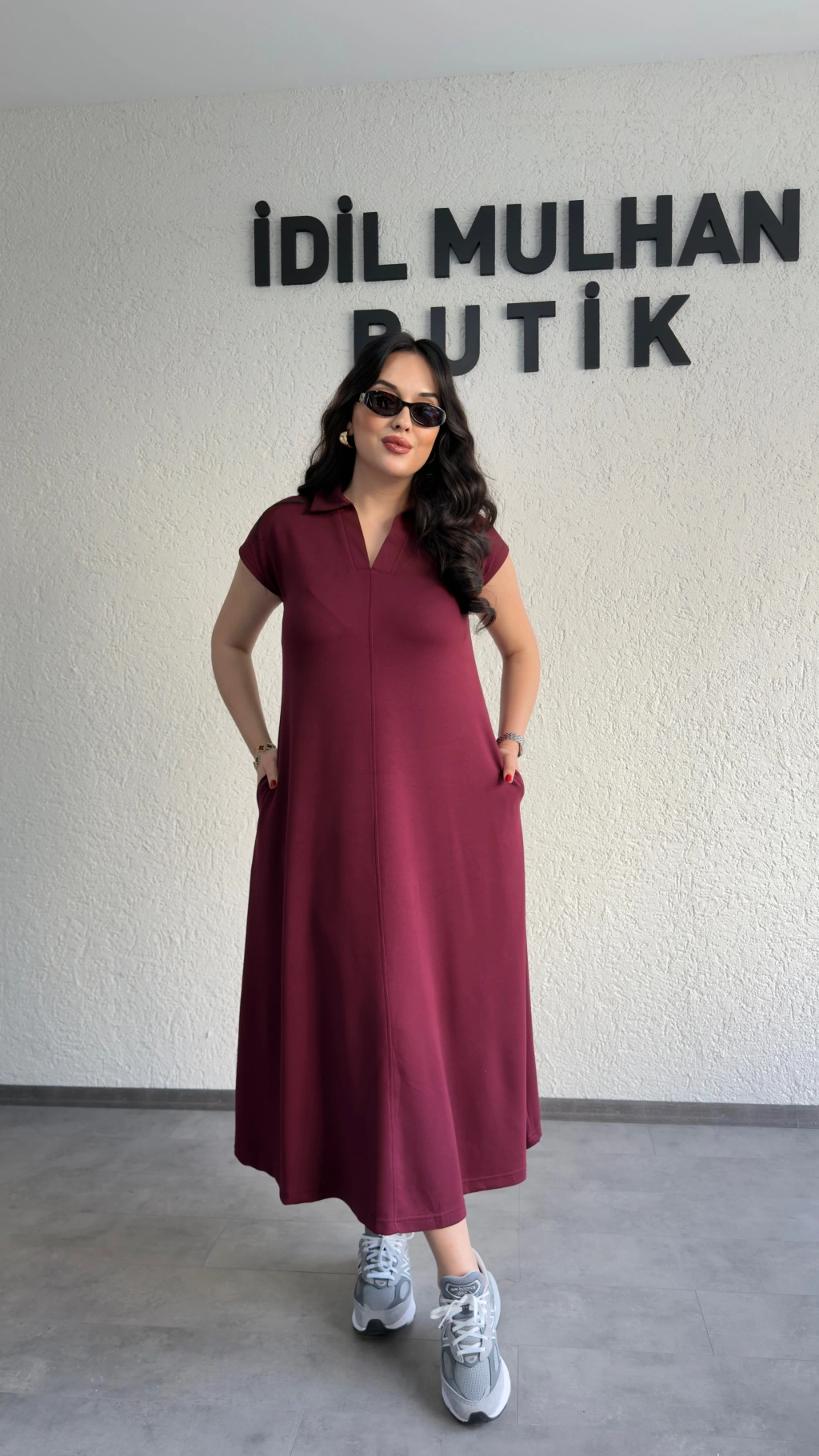 Bordo Cepli Oysh Kumaş Maxi Elbise