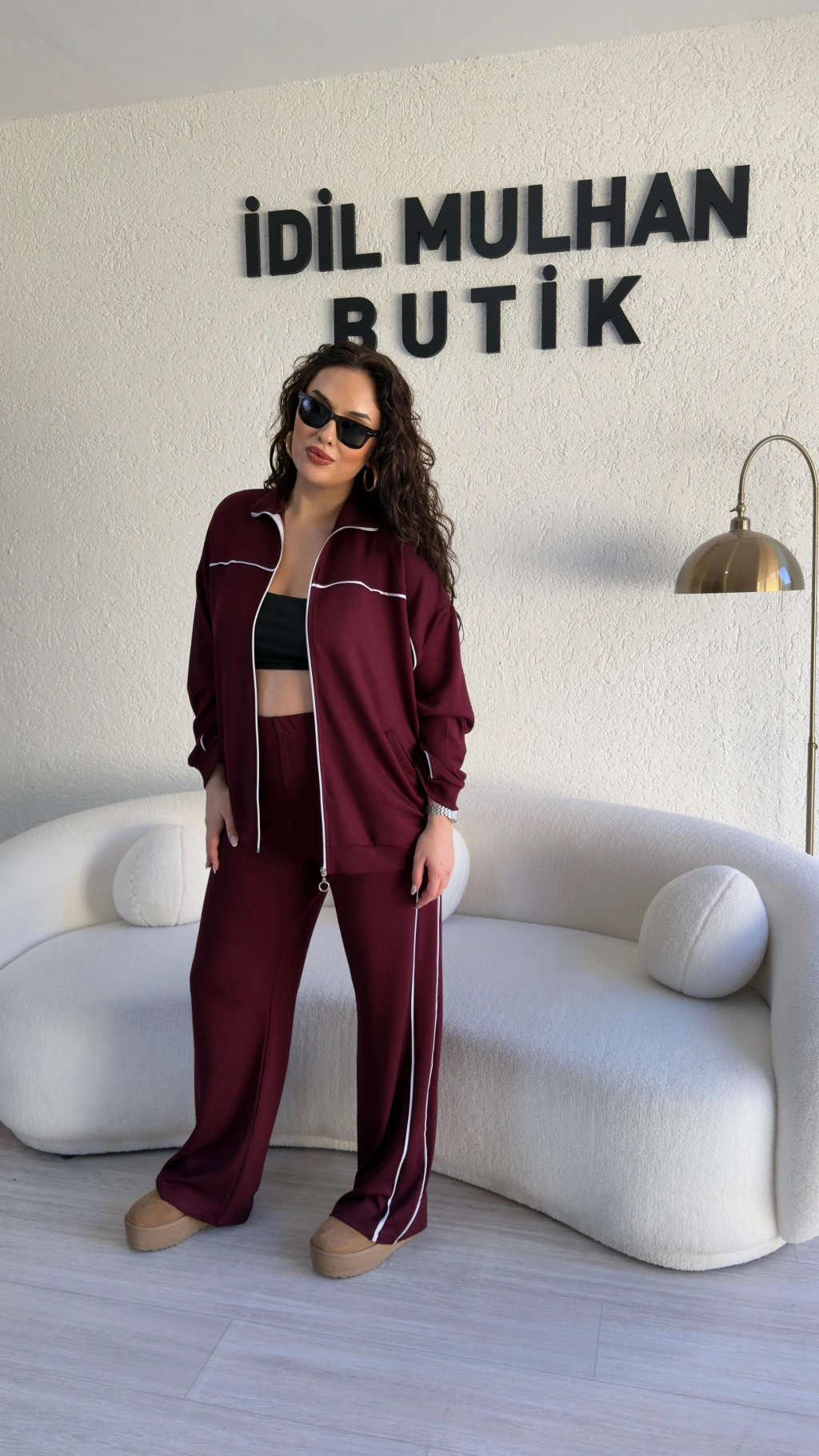 Bordo Fermuarlı Üstlü Şerit Detaylı Takım