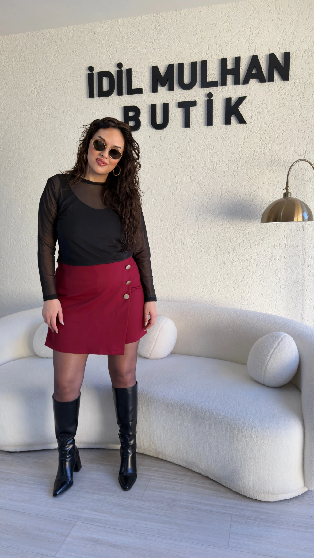Bordo Fermuarlı Üstlü Şerit Detaylı Takım