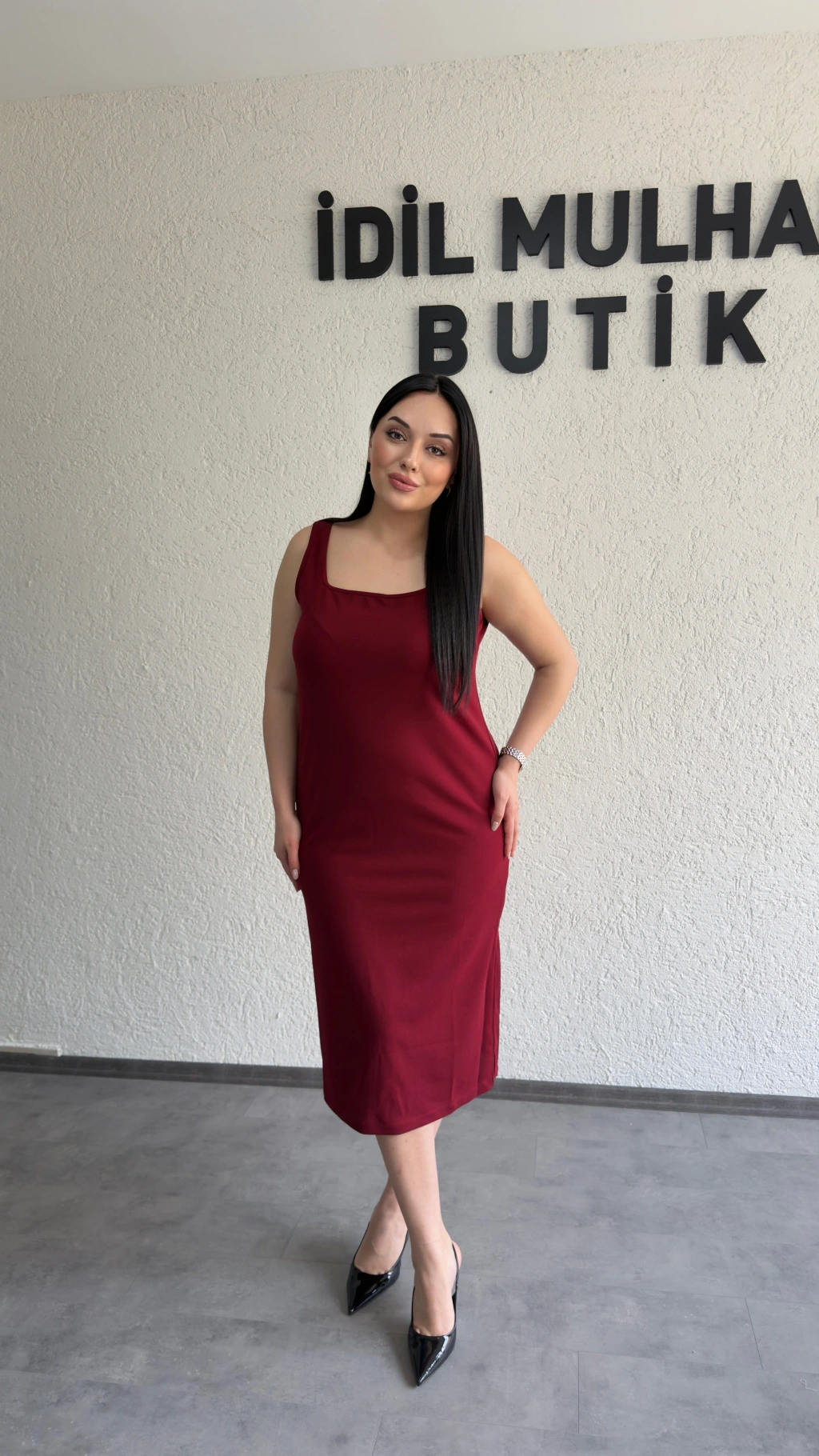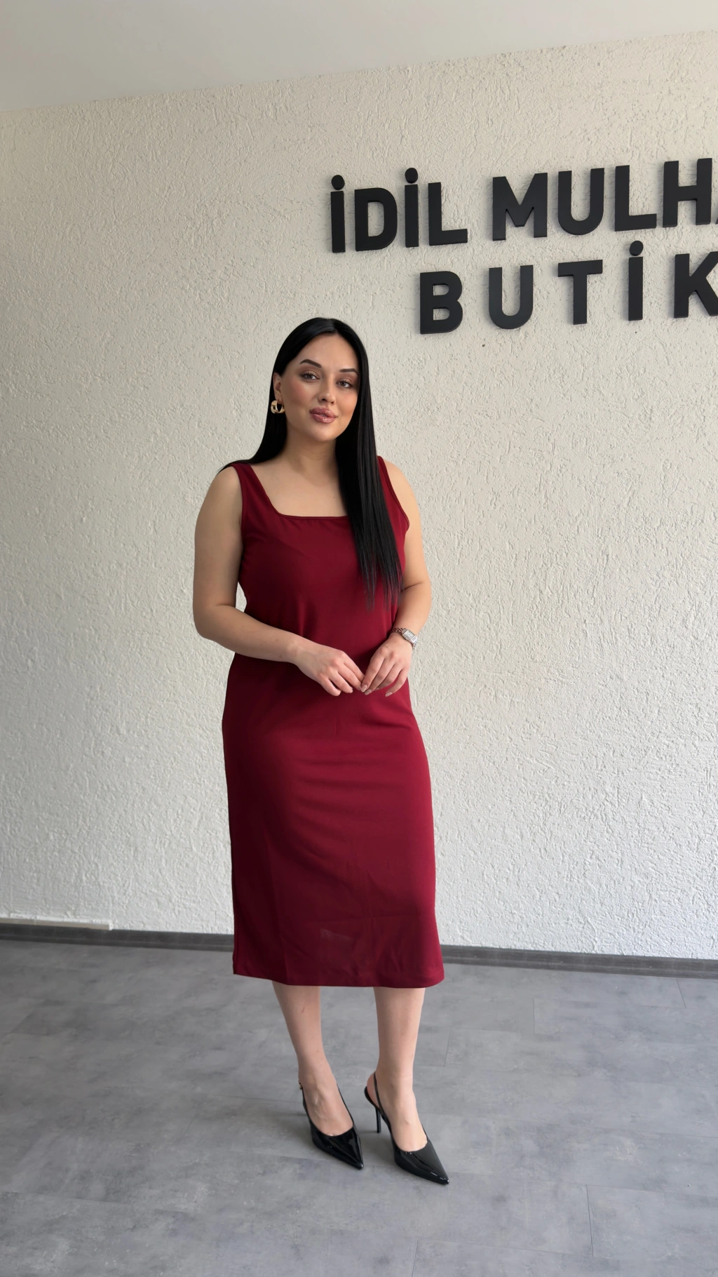 Kırmızı Kruvaze Yaka Kat Kat Elbise