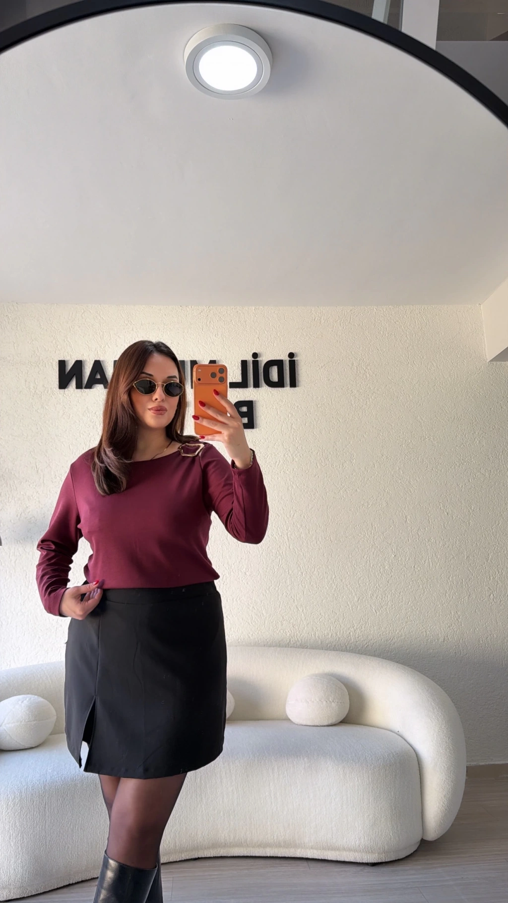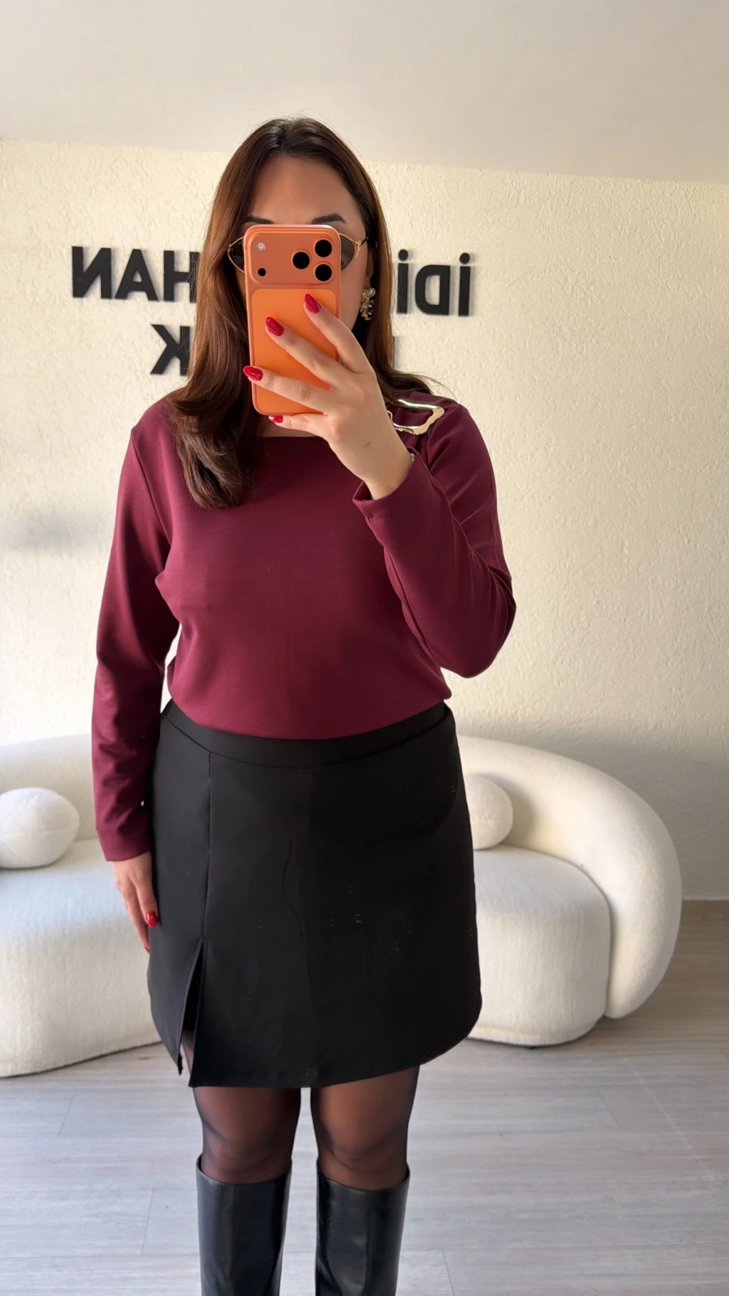 Bordo Oysh Kumaş Madonna Yaka Elbise