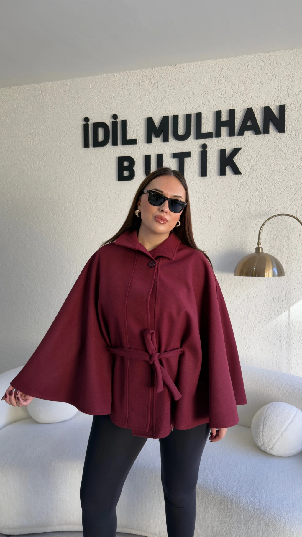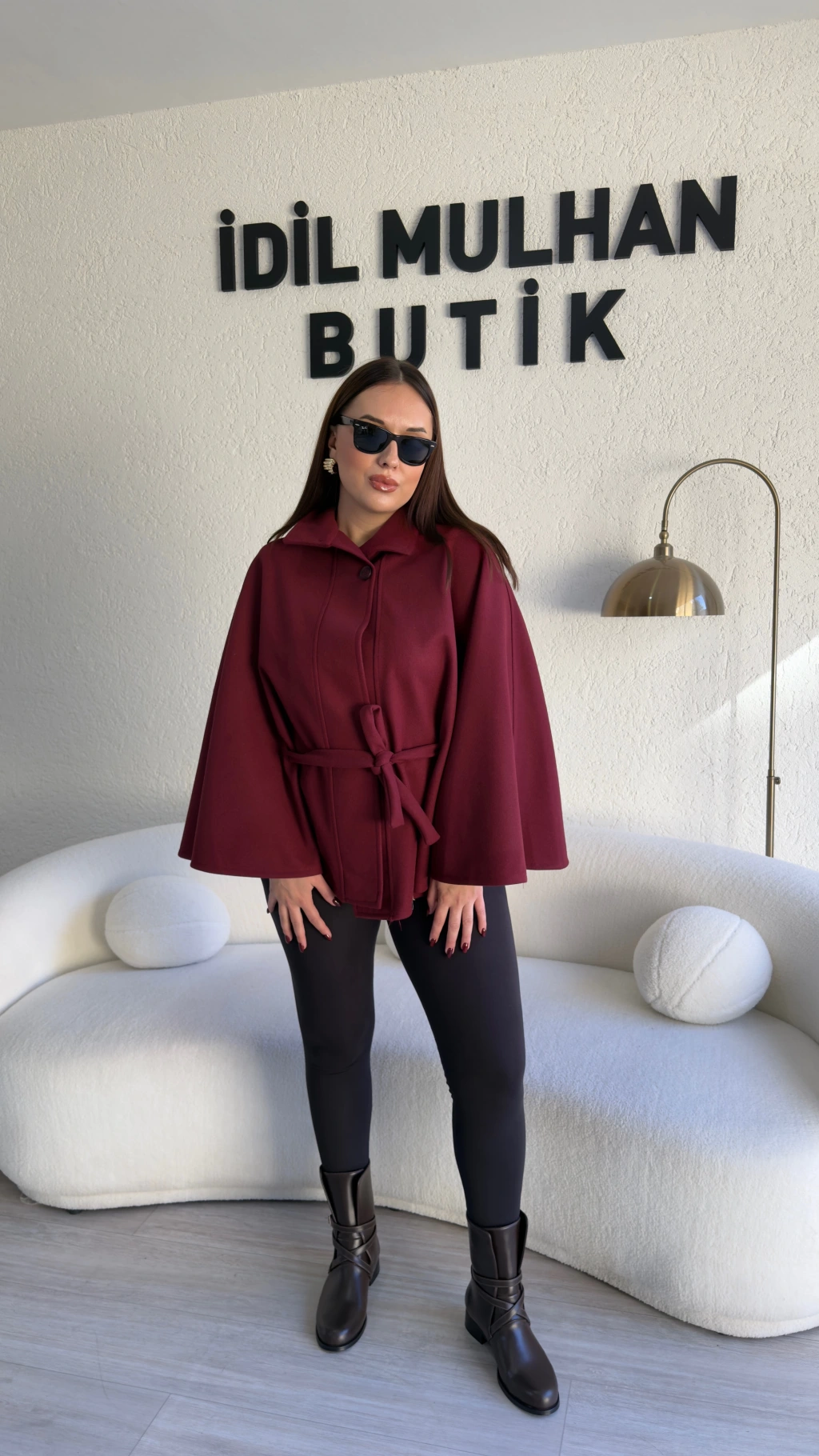 Acı Kahve Oversize Kaşe Kuşaklı Panço