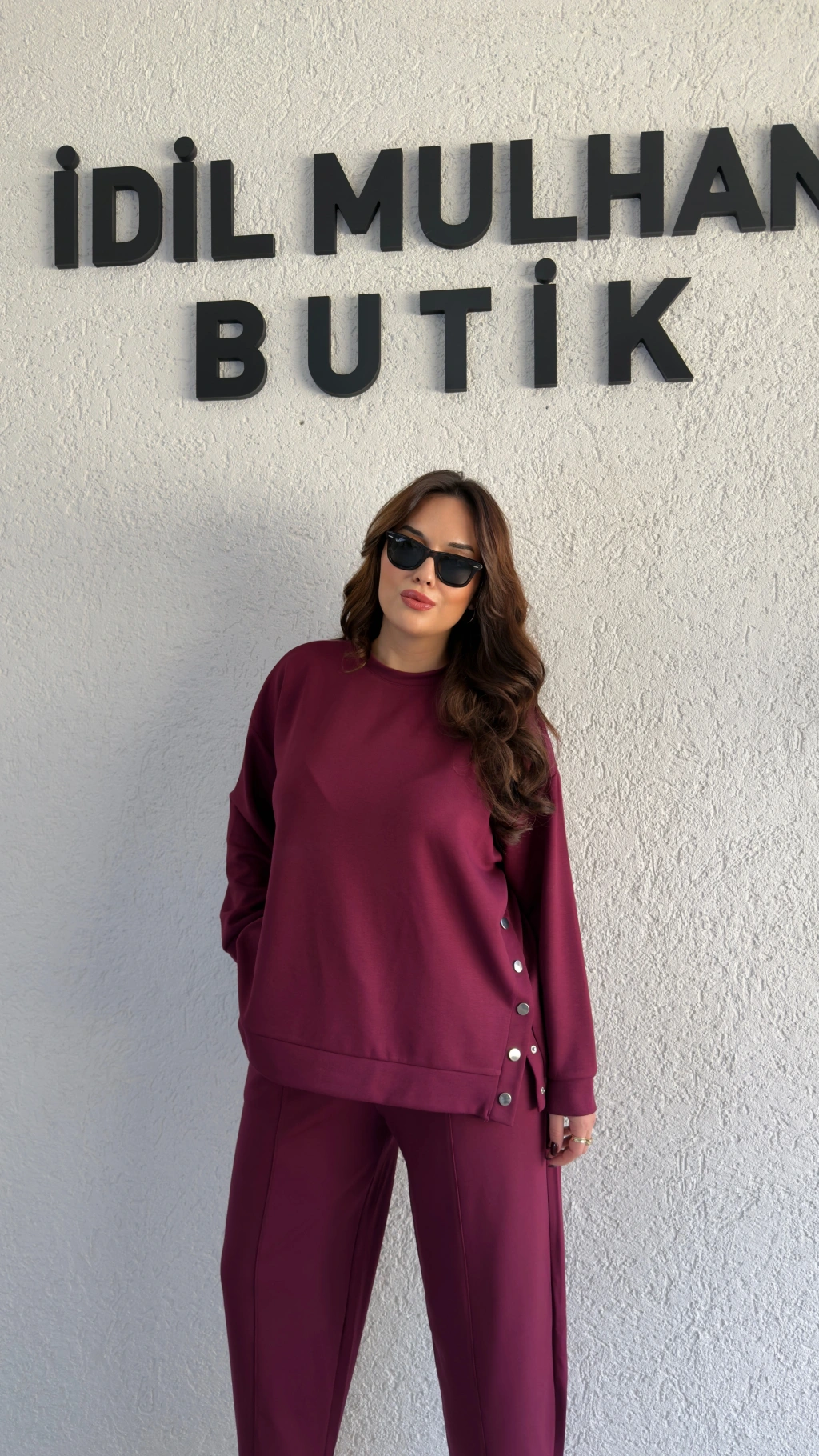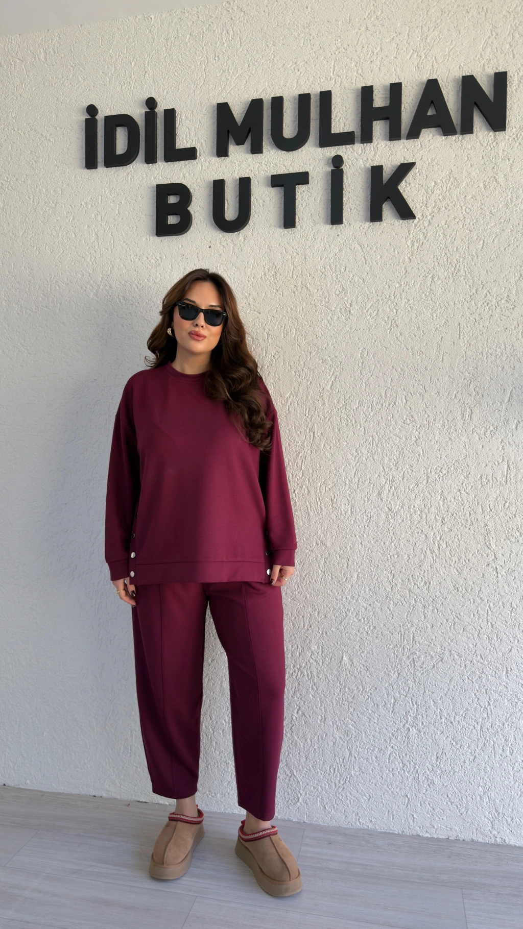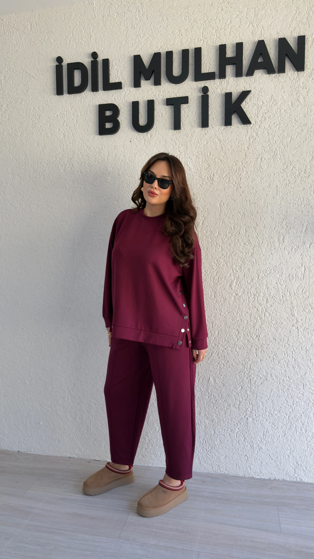 Bordo Oysh Kumaş Yanı Çıtçıtlı Takım