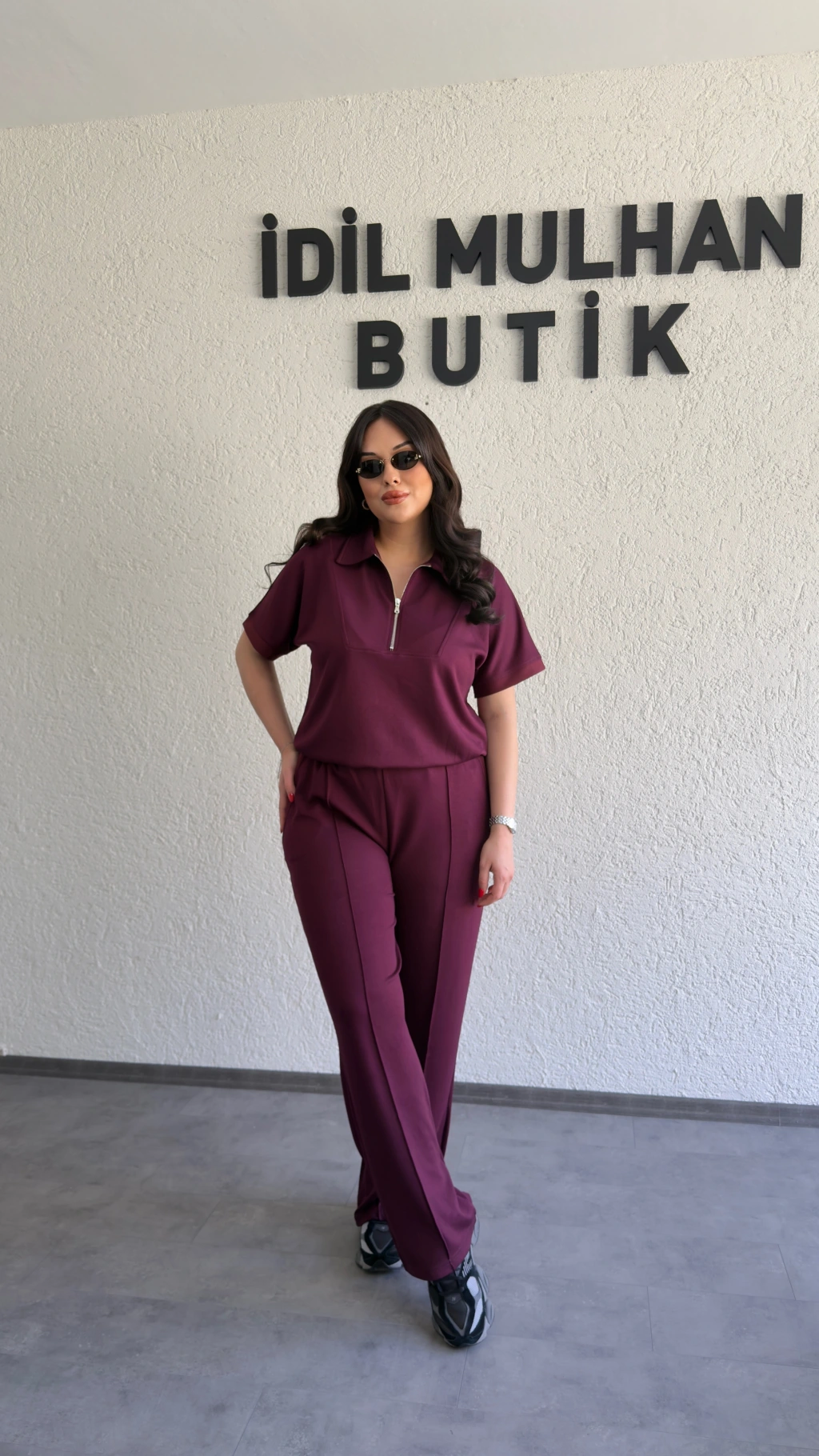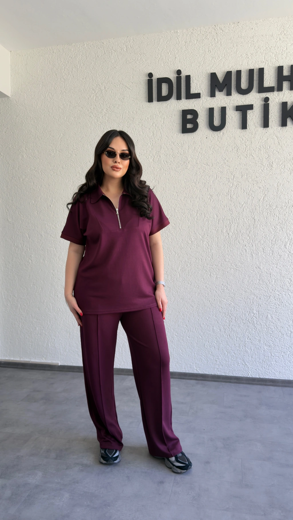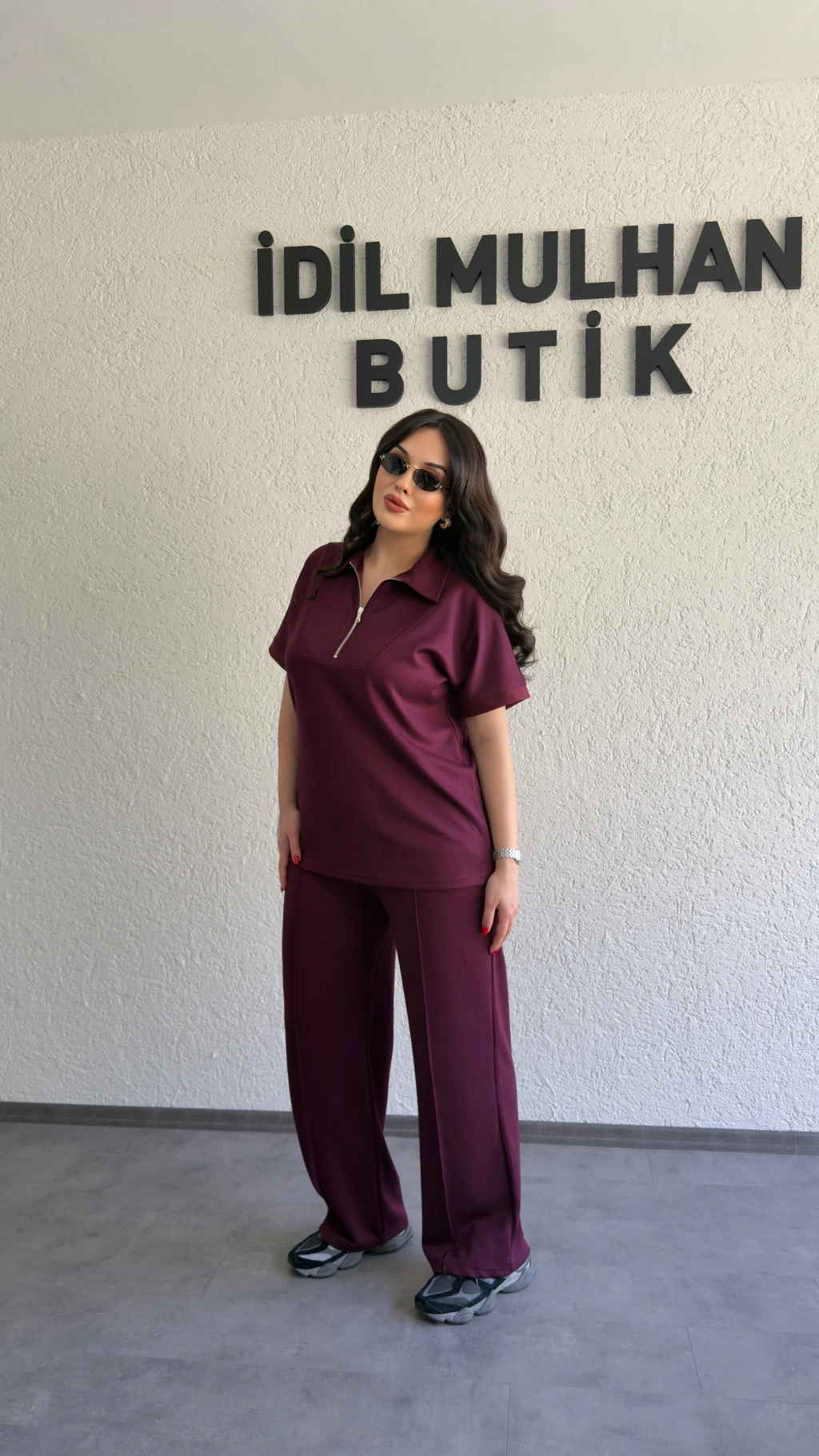 Bordo Polo Yaka Rahat Kesim Takım