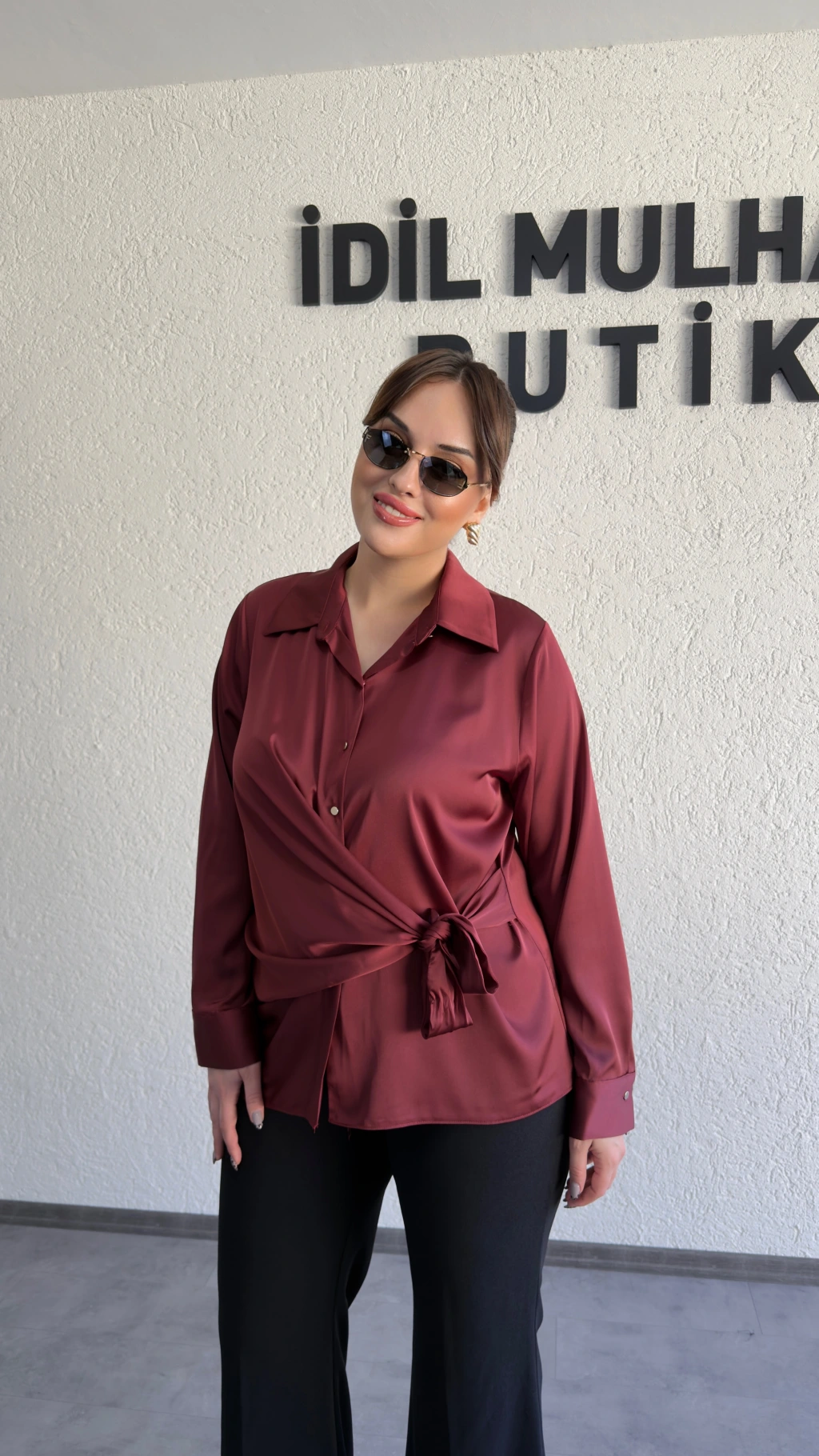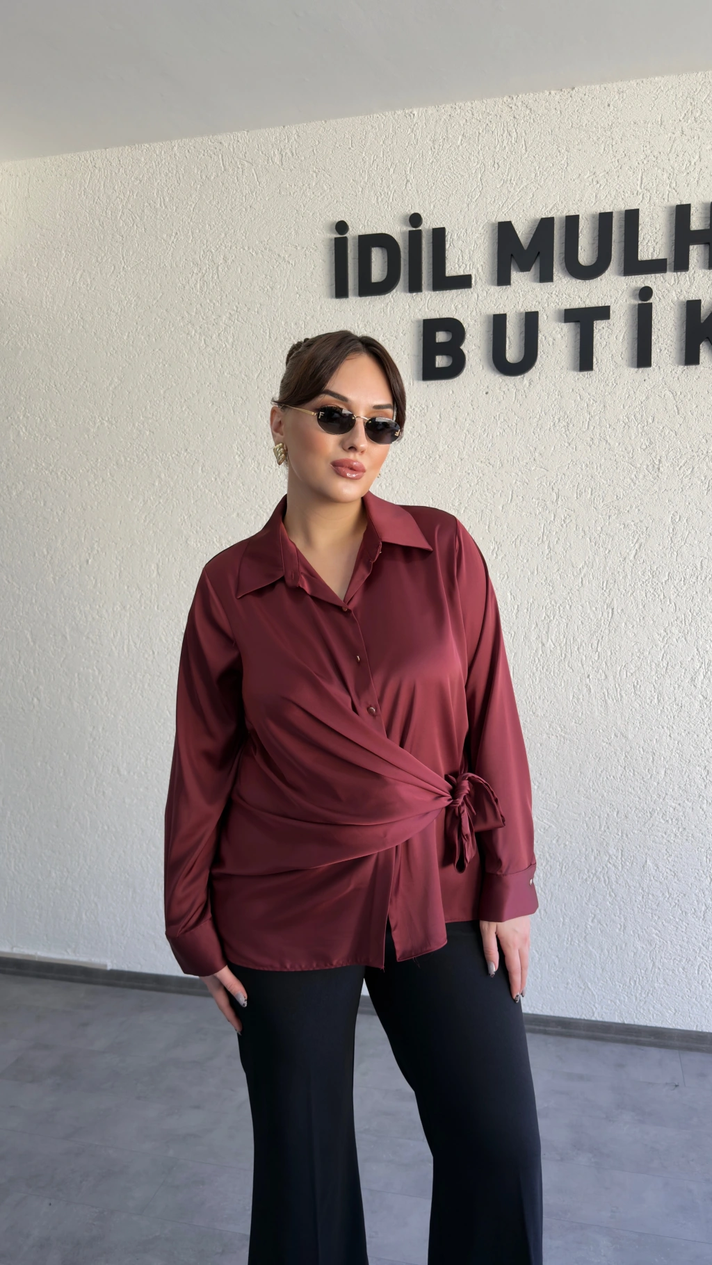 Bordo Saten Yandan Bağlamalı Gömlek