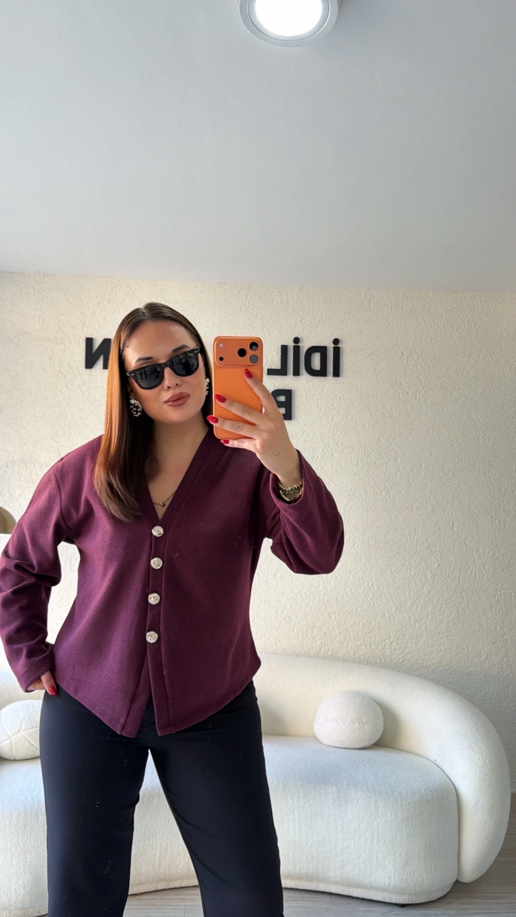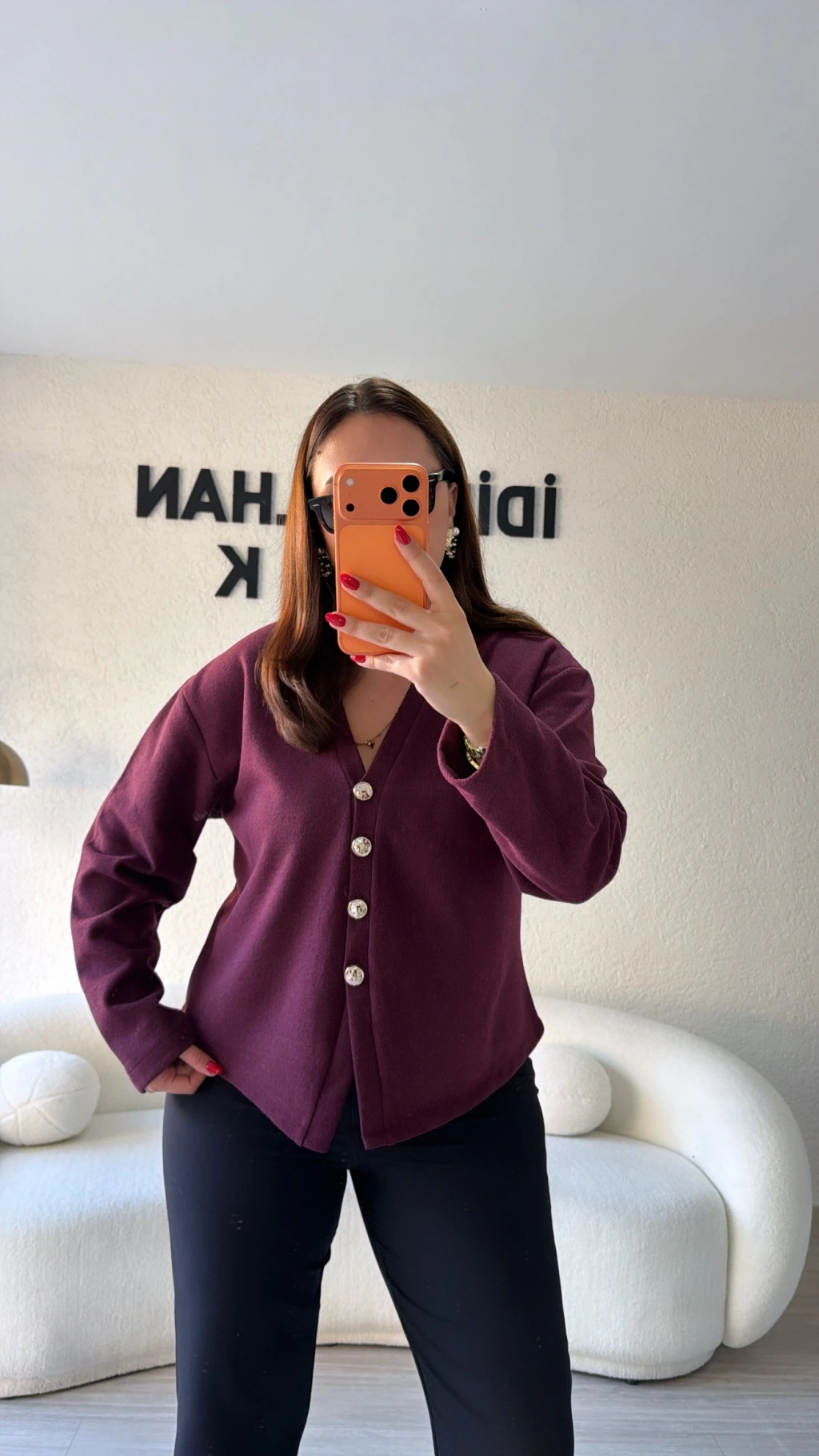 Bordo Silver Düğmeli Triko Hırka