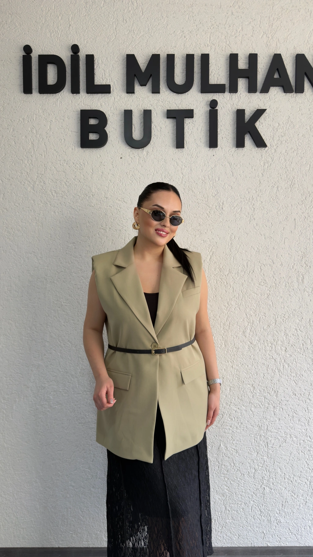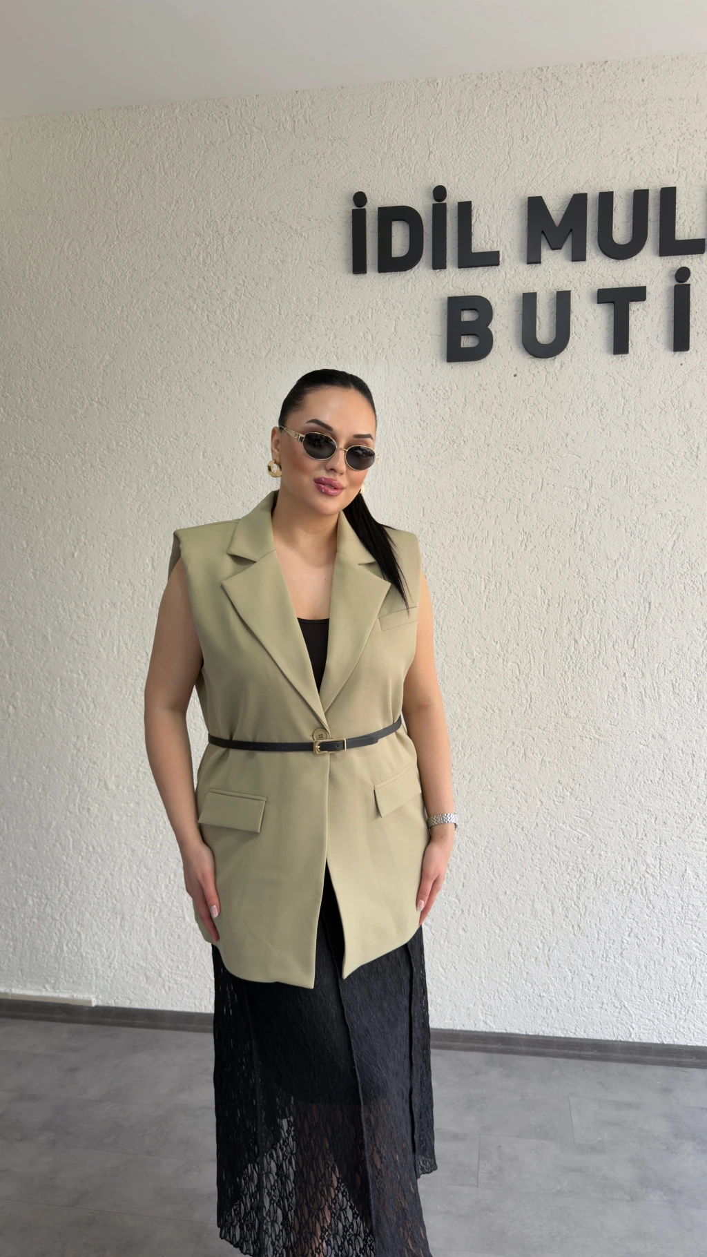 Çağla Yeşili Vatkalı Premium Blazer Yelek