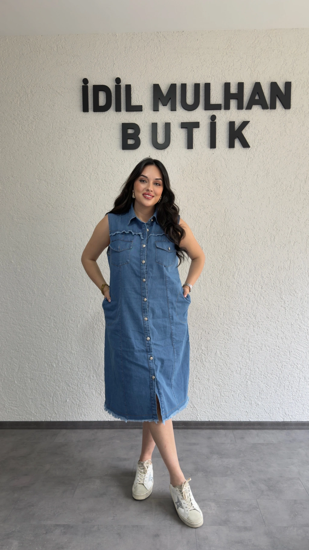 Düğme Ve Cep Detaylı Kolsuz Kot Elbise