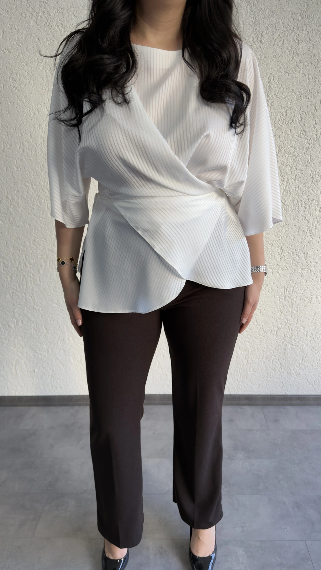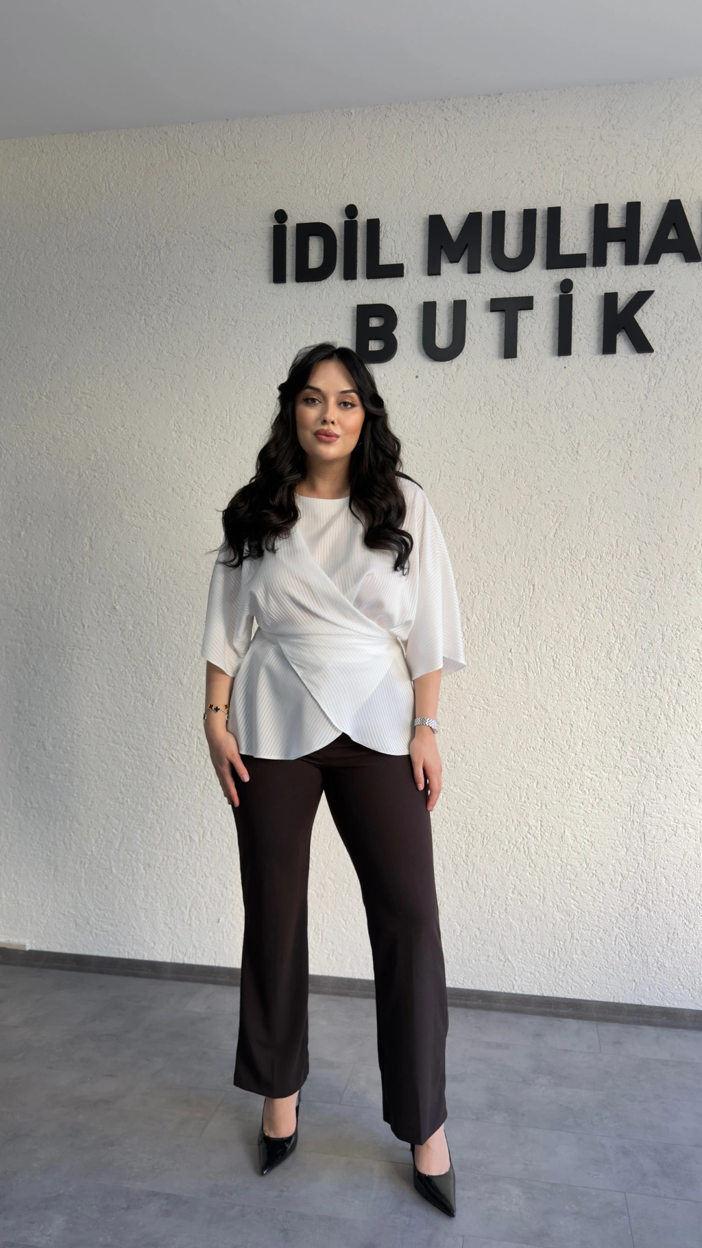 Ekru Nisbet Kumaş Bağcıklı Bluz