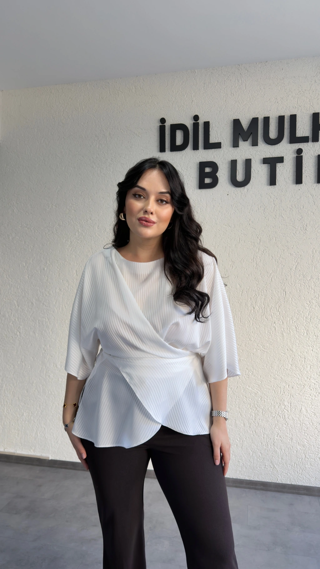 Siyah Beyaz Puantiyeli Yan Bağcıklı Kruvaze Bluz