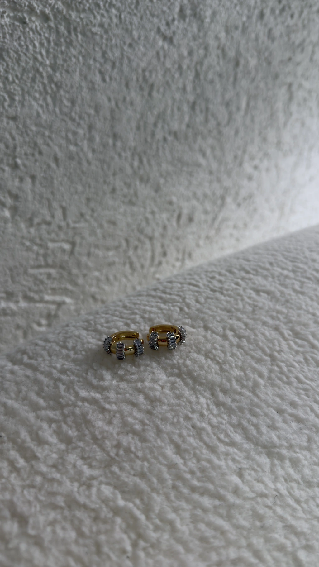 Gold Silver Baget Taşlı Bombe Halka Küpe