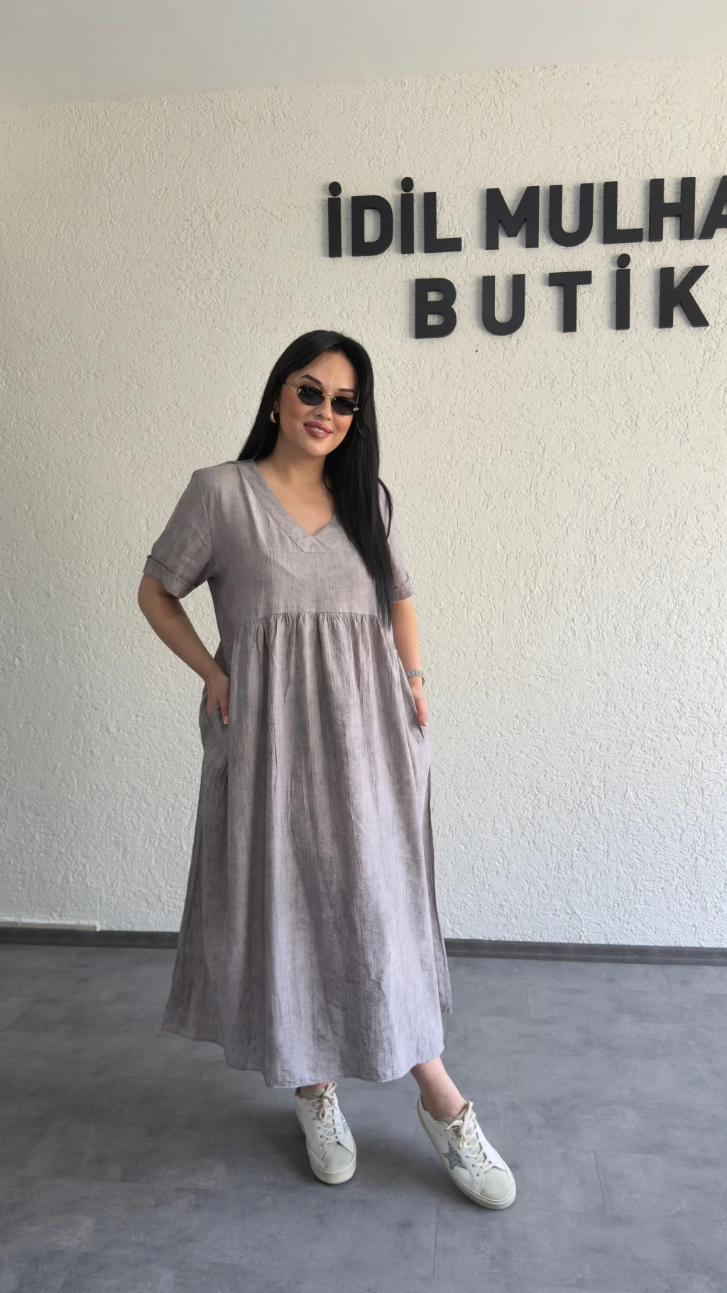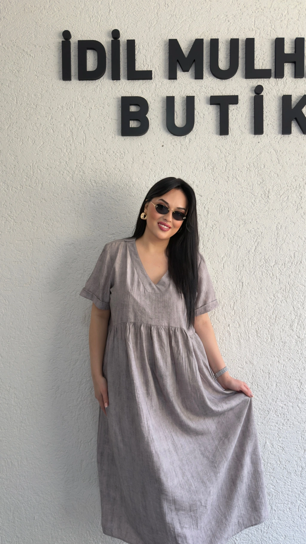 Kahverengi Kruvaze Yaka Kat Kat Elbise