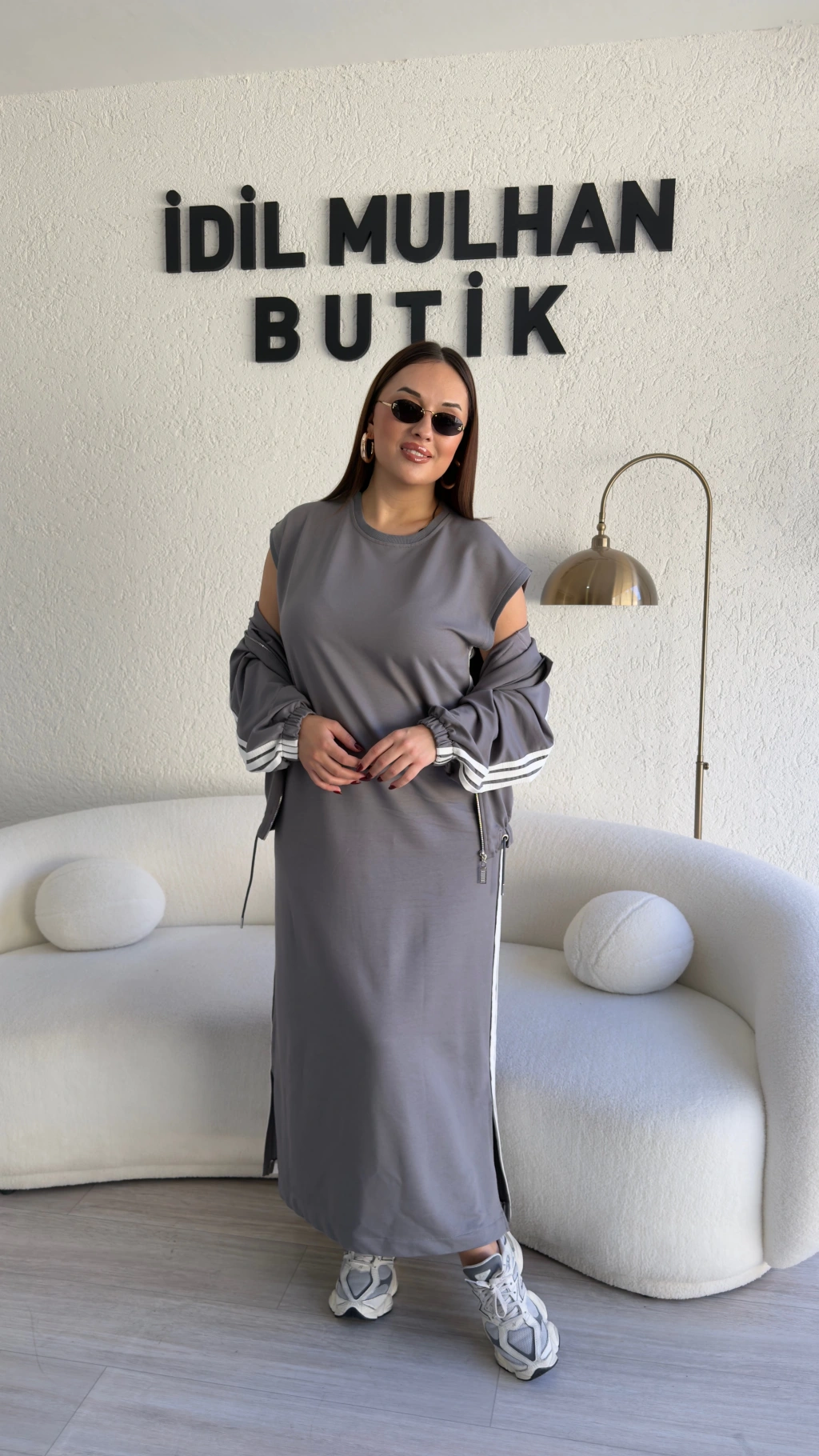 Lacivert Yakası Düğmeli Büyük Beden Takım