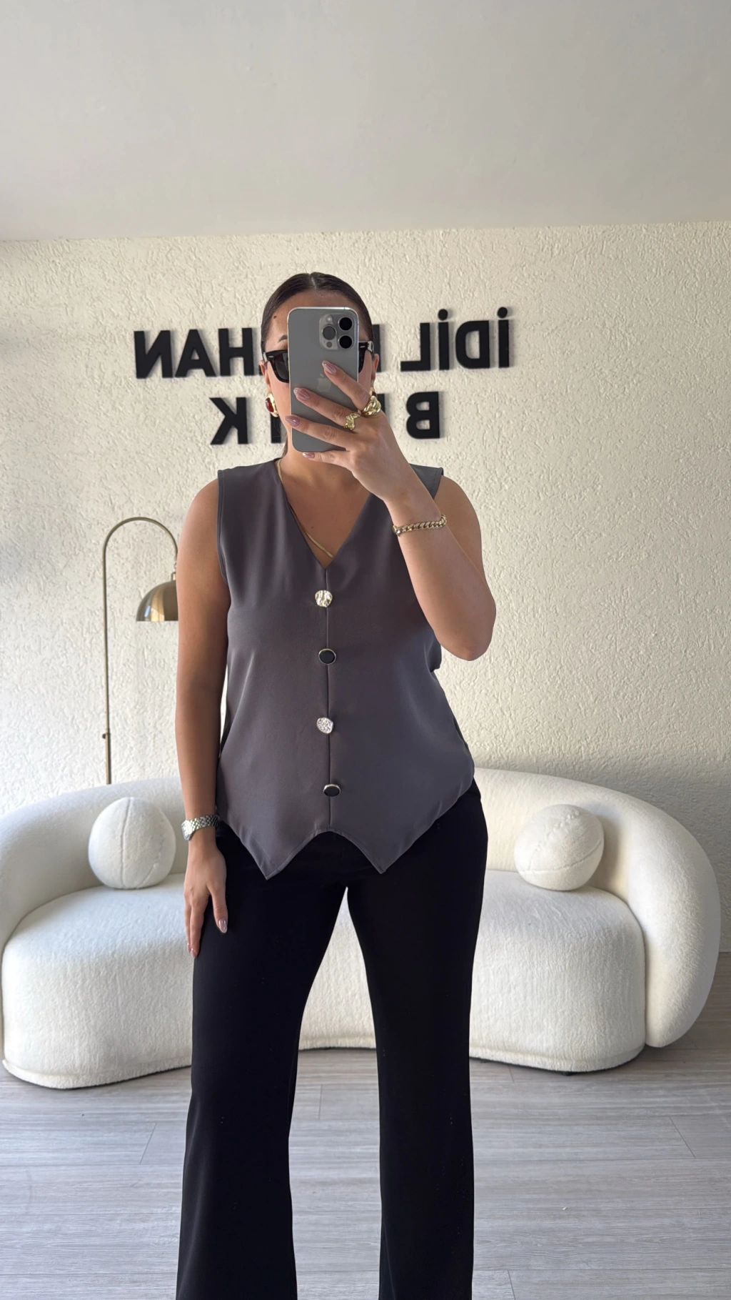 Acı Kahve Şifon Kol Gold Düğme Detaylı Elbise