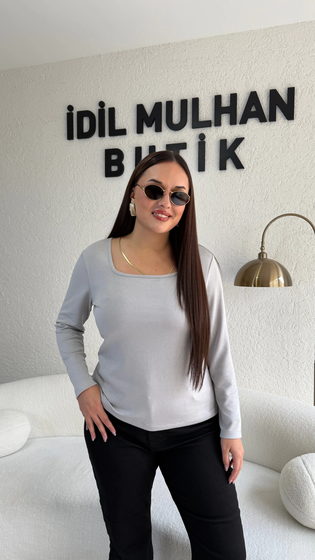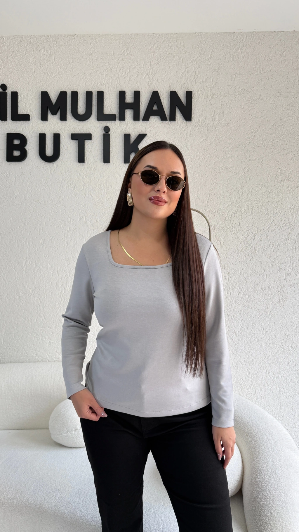 Gri Kare Yaka Oysh Kumaş Bluz