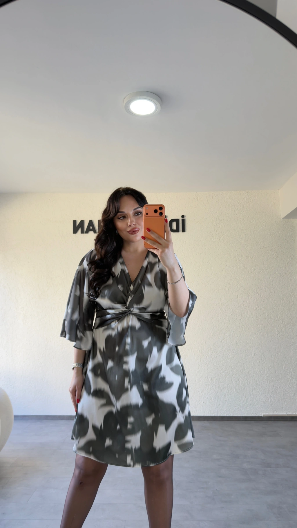 Kahverengi Desenli Büzgü Detaylı Elbise