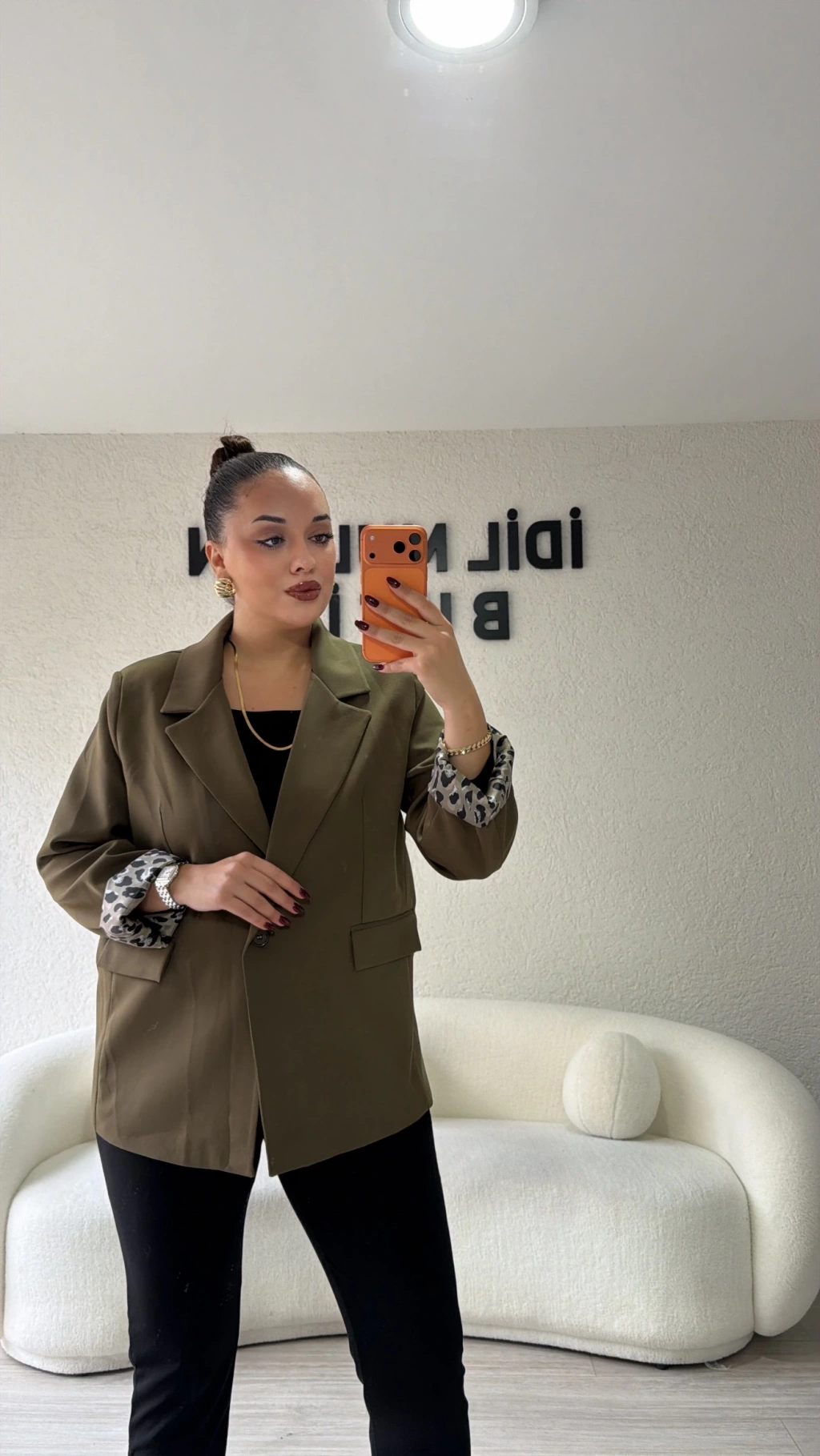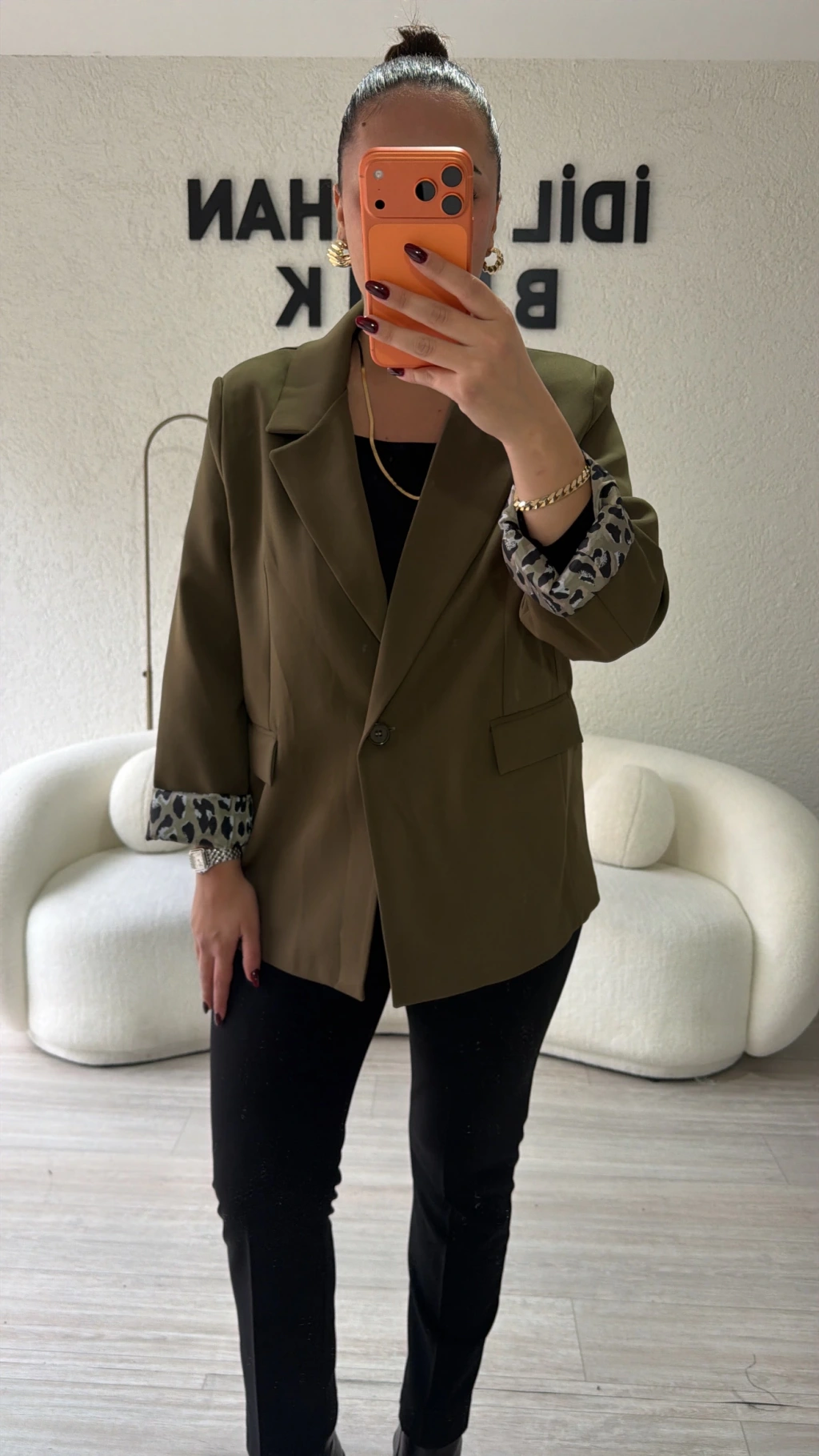 Kahverengi Bağlama Detaylı Kruvaze Blazer Takım