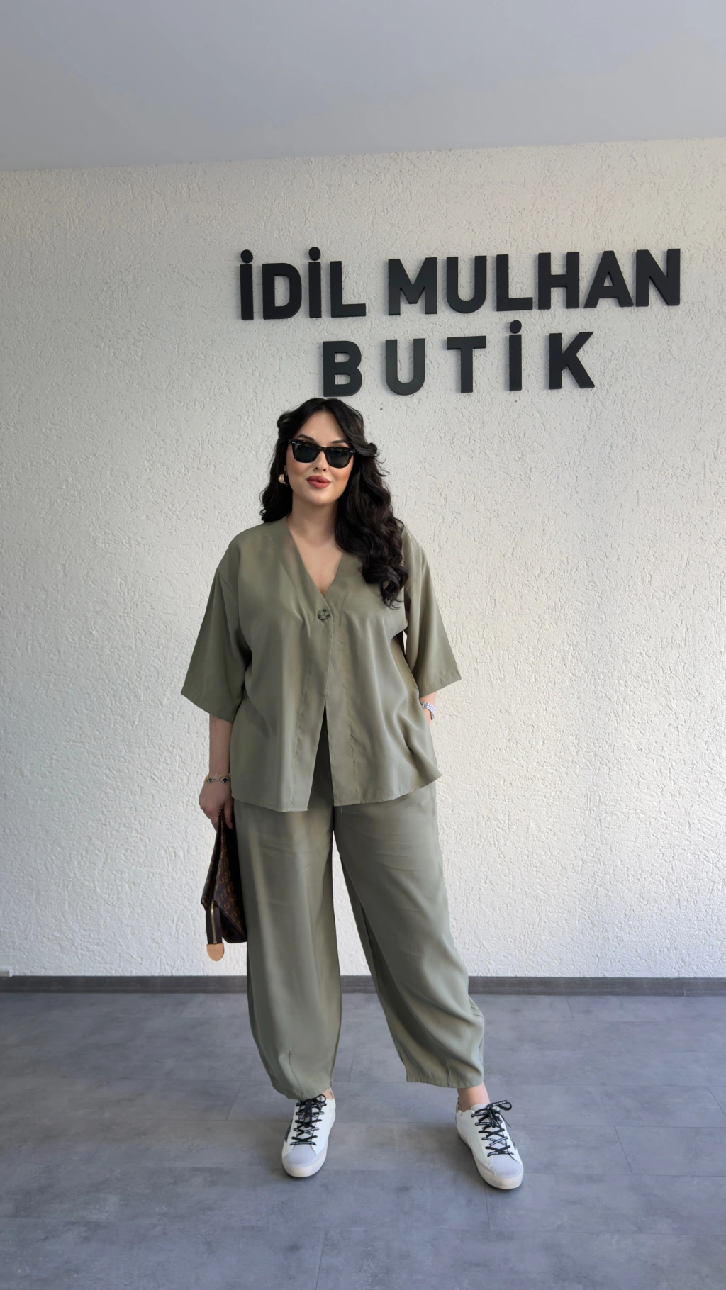 Ekru Tek Düğmeli Bohem Tensel Takım