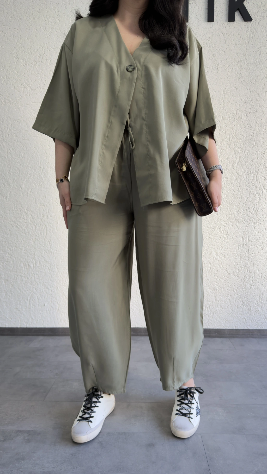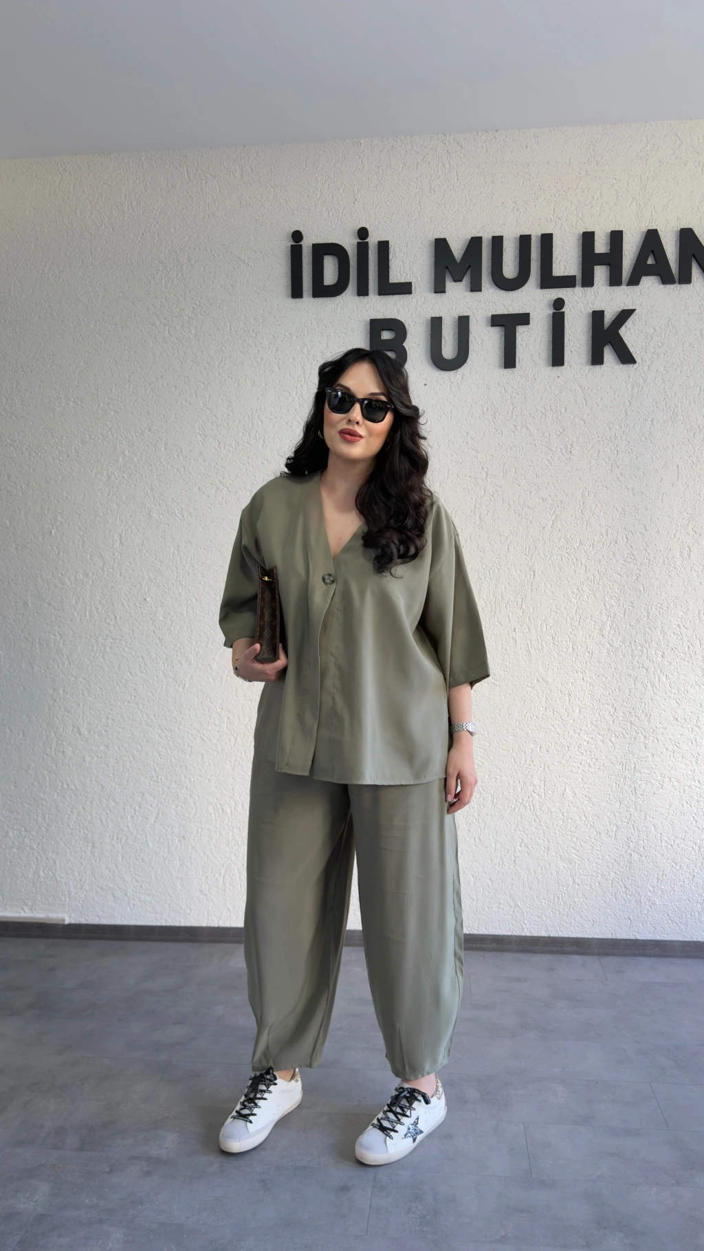 Siyah Kolları Manşet Detaylı Gömlek Takım