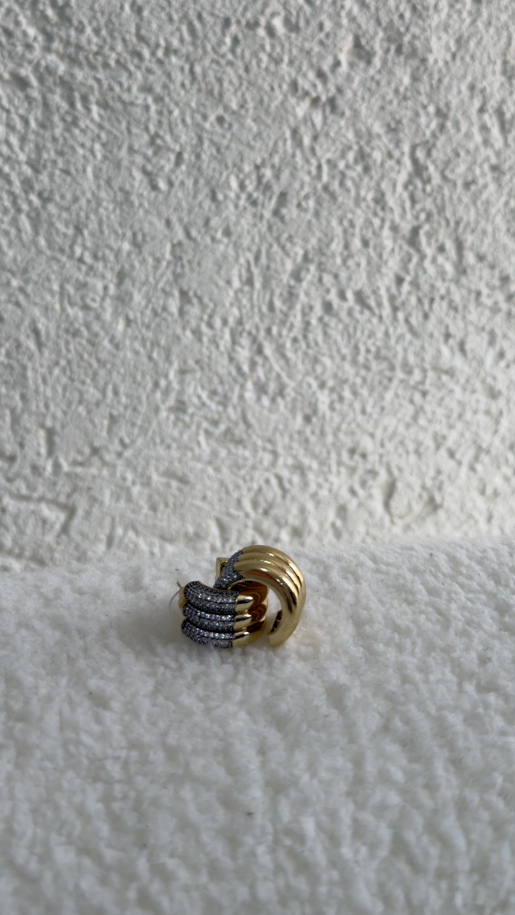 Gold Silver Baget Taşlı Bombe Halka Küpe