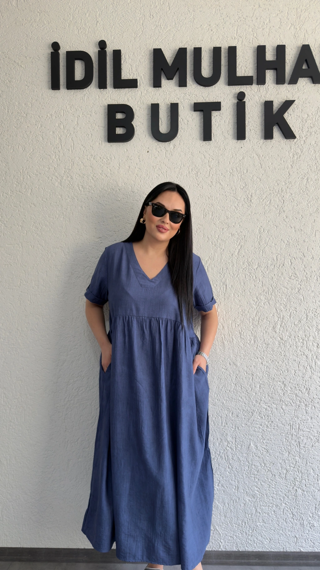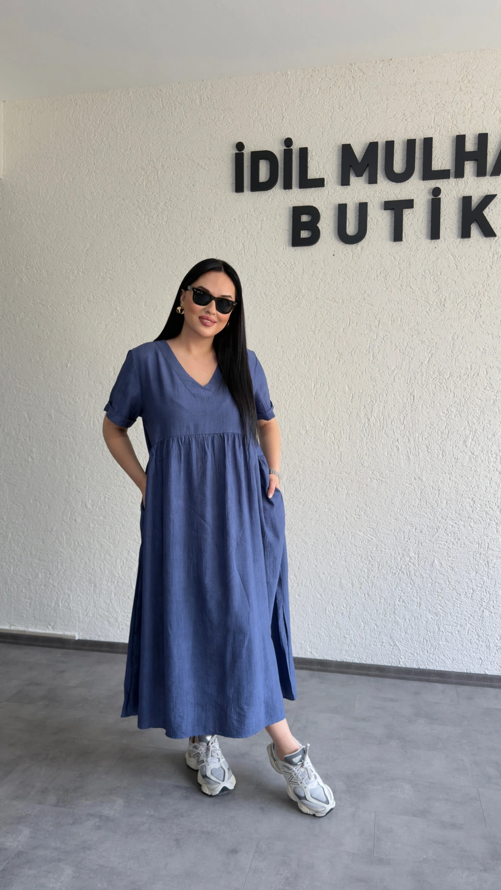 Lacivert Kruvaze Yaka Kat Kat Elbise