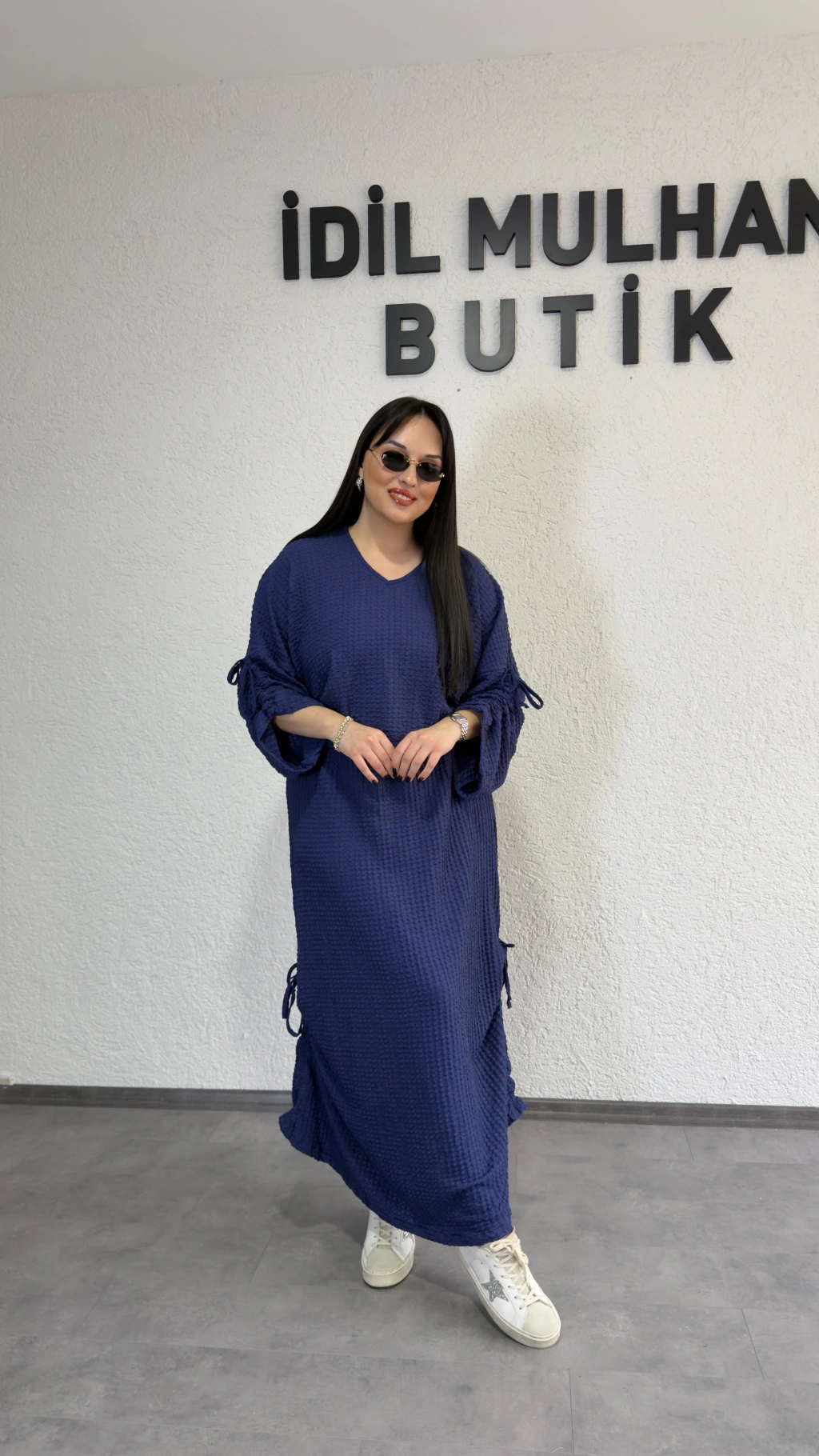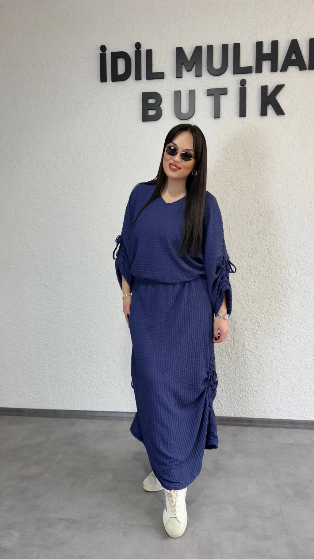 İndigo Mavi Kol Ve Etek Ucu Büzgülü Ayarlanabilir Takım