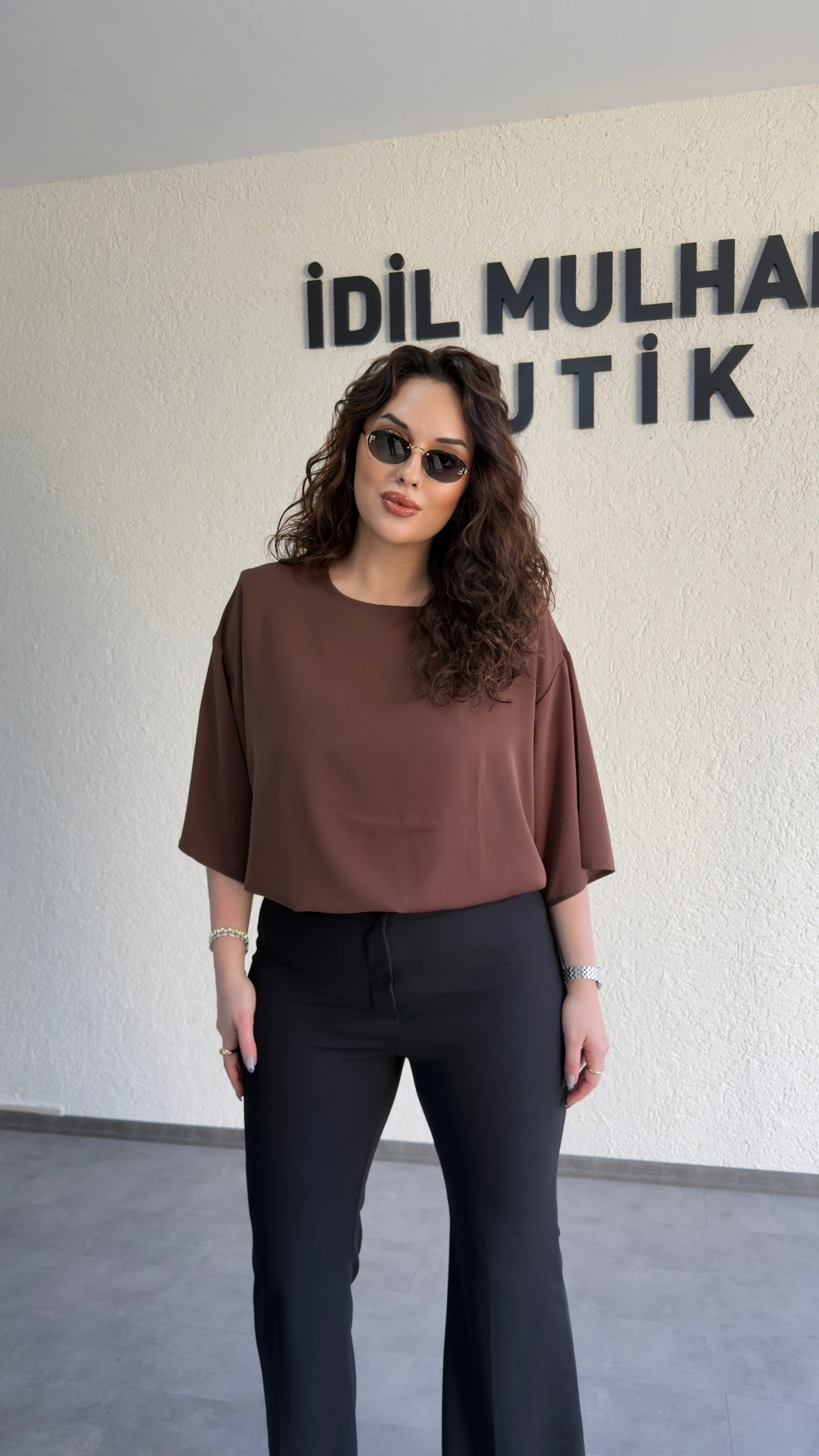 Kahverengi Oysh Kumaş V Yaka Salaş Takım