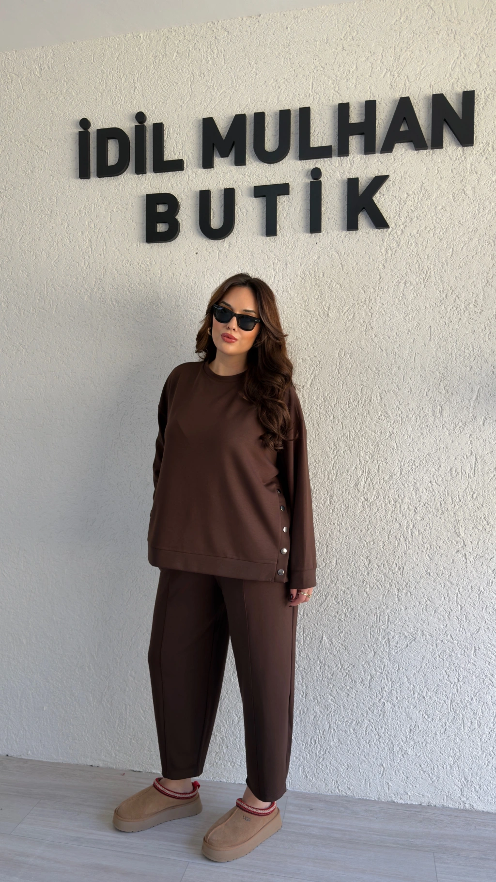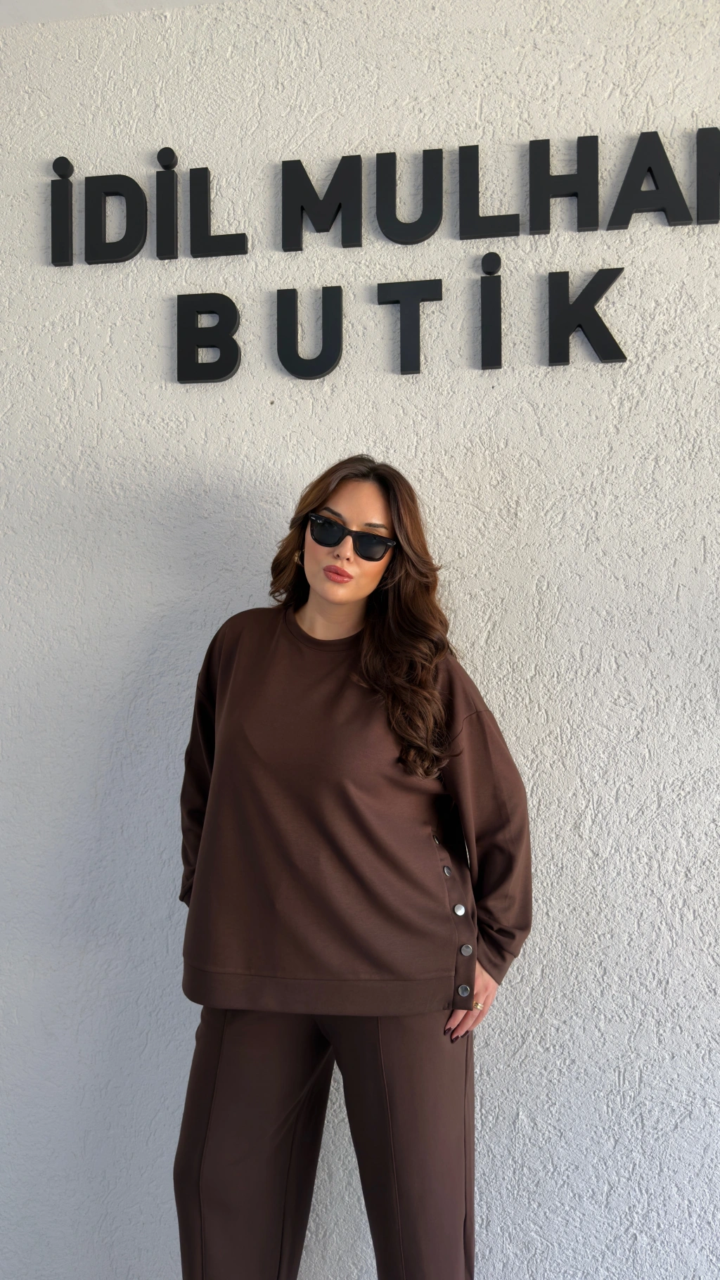 Kahverengi Oysh Kumaş Yanı Çıtçıtlı Takım