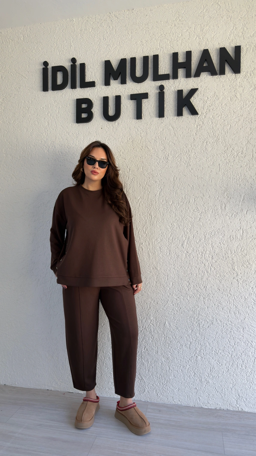 Kahverengi Oysh Kumaş Pis Kesim Salaş Takım