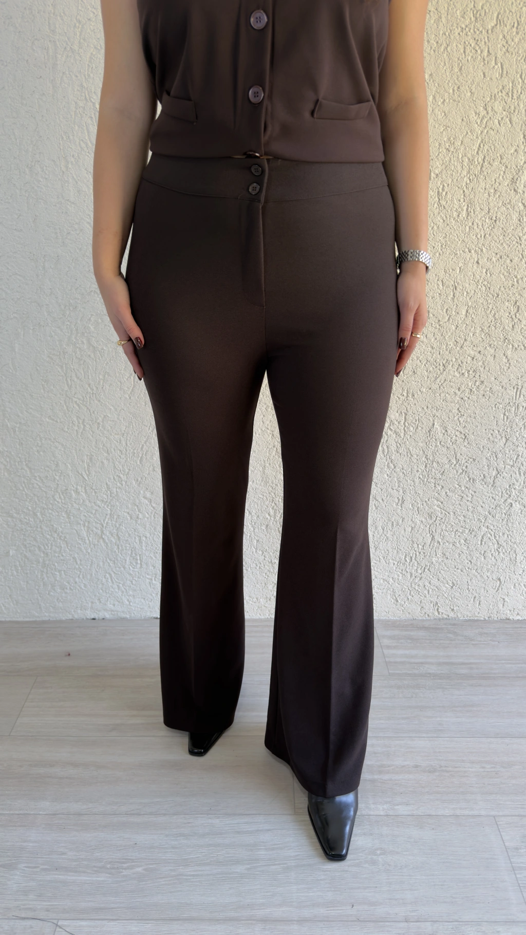 Kahverengi Yüksek Bel İspanyol Paça Pantolon