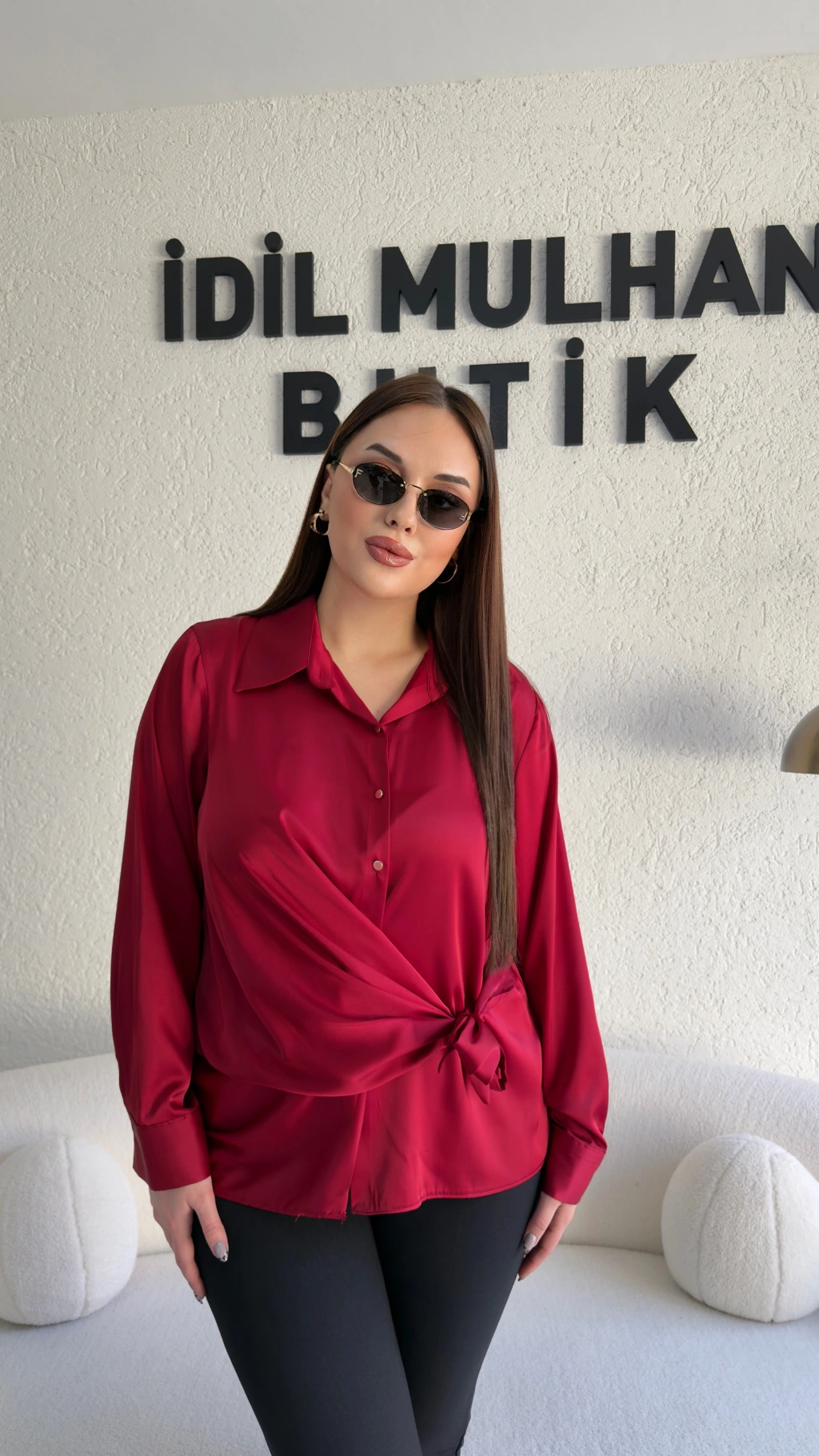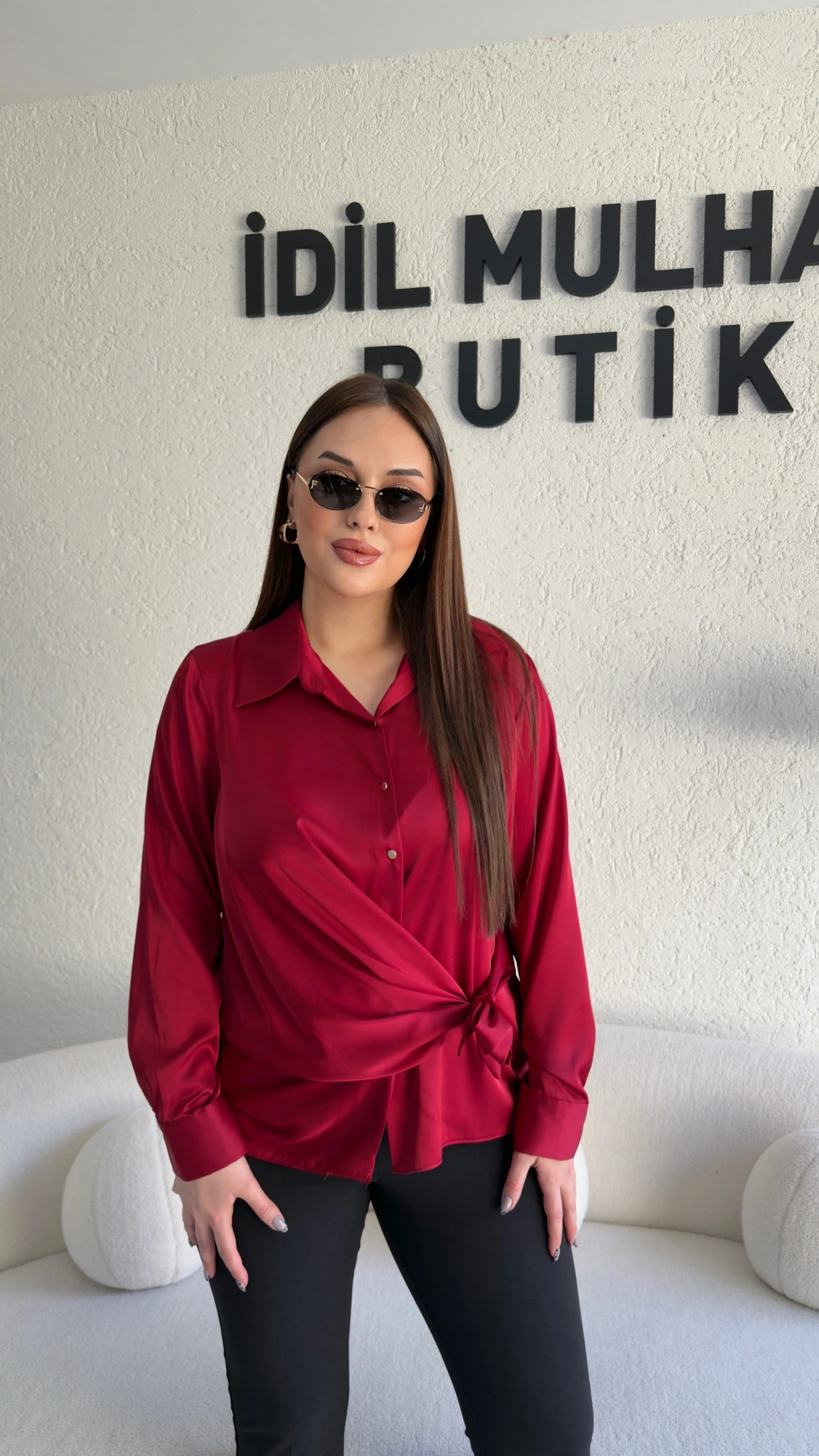 Kırmızı Saten Yandan Bağlamalı Gömlek