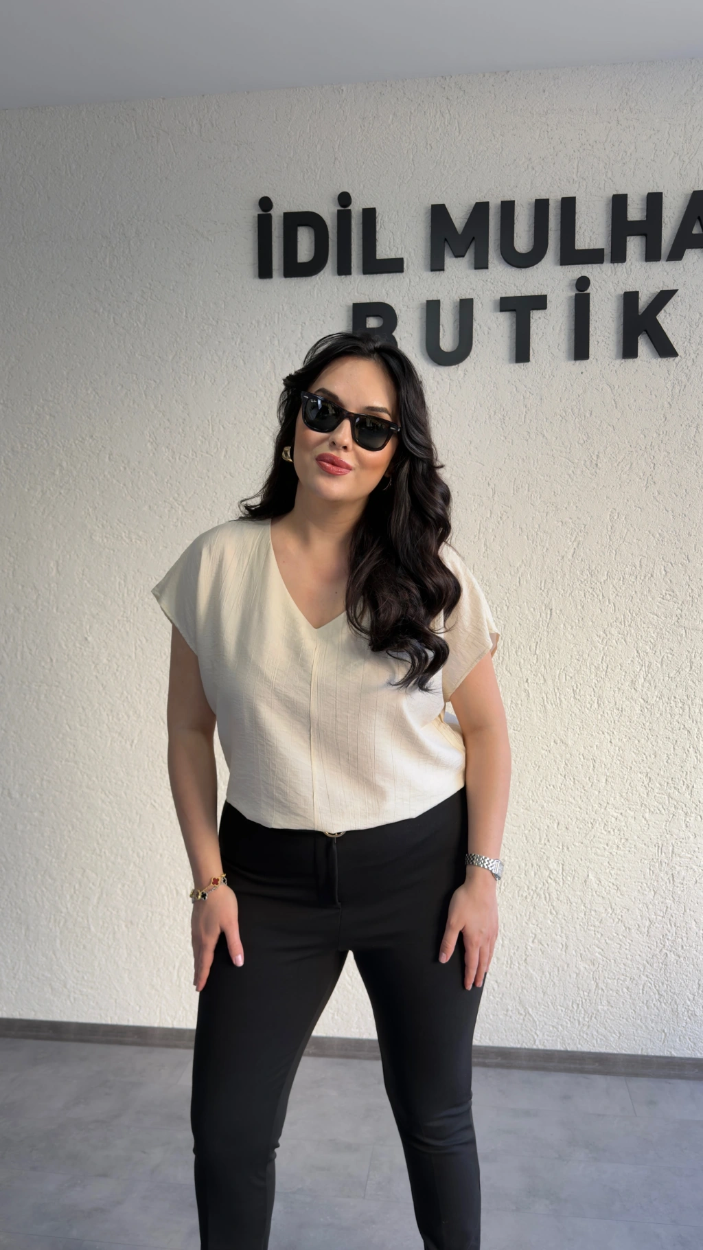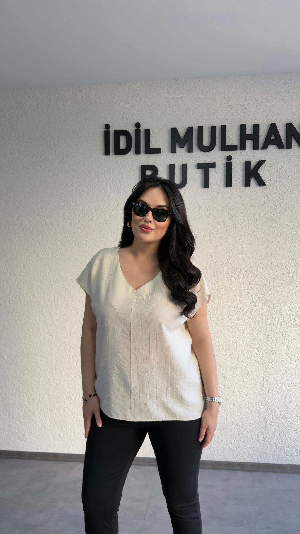 Krem V Yaka Çilek Kumaş Bluz