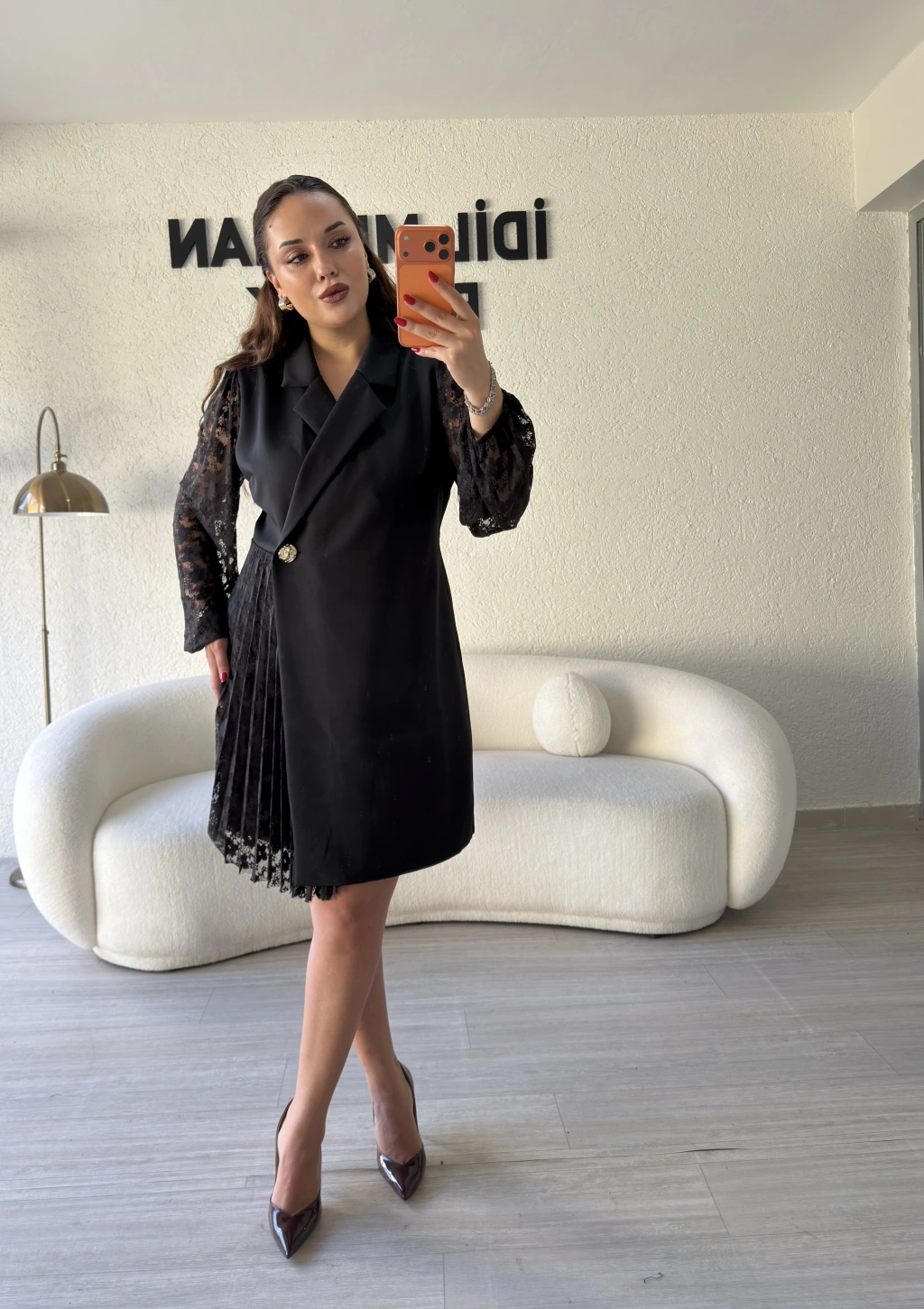 Siyah Krep Kumaş Düğüm Detaylı Elbise