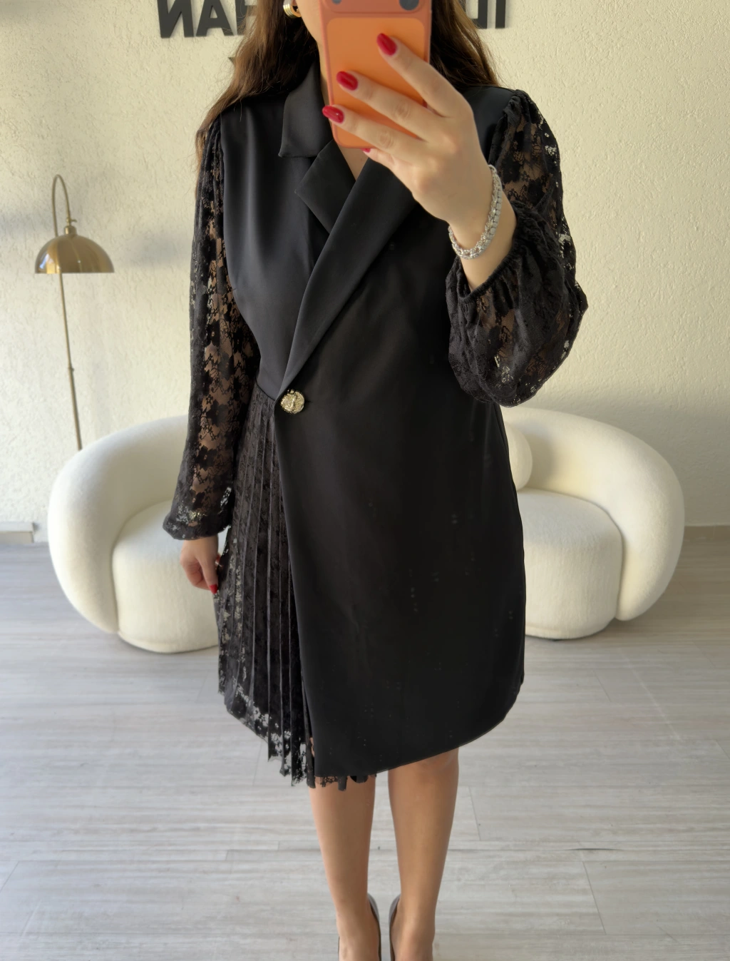 Acı Kahve Kruvaze Pile Detaylı Elbise