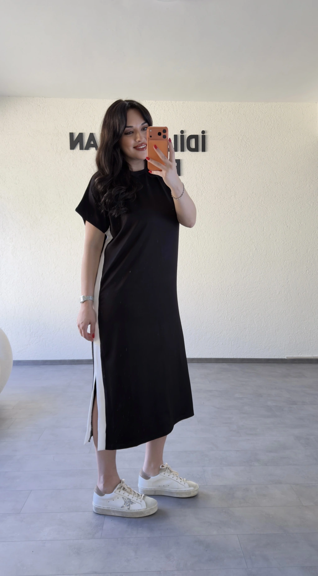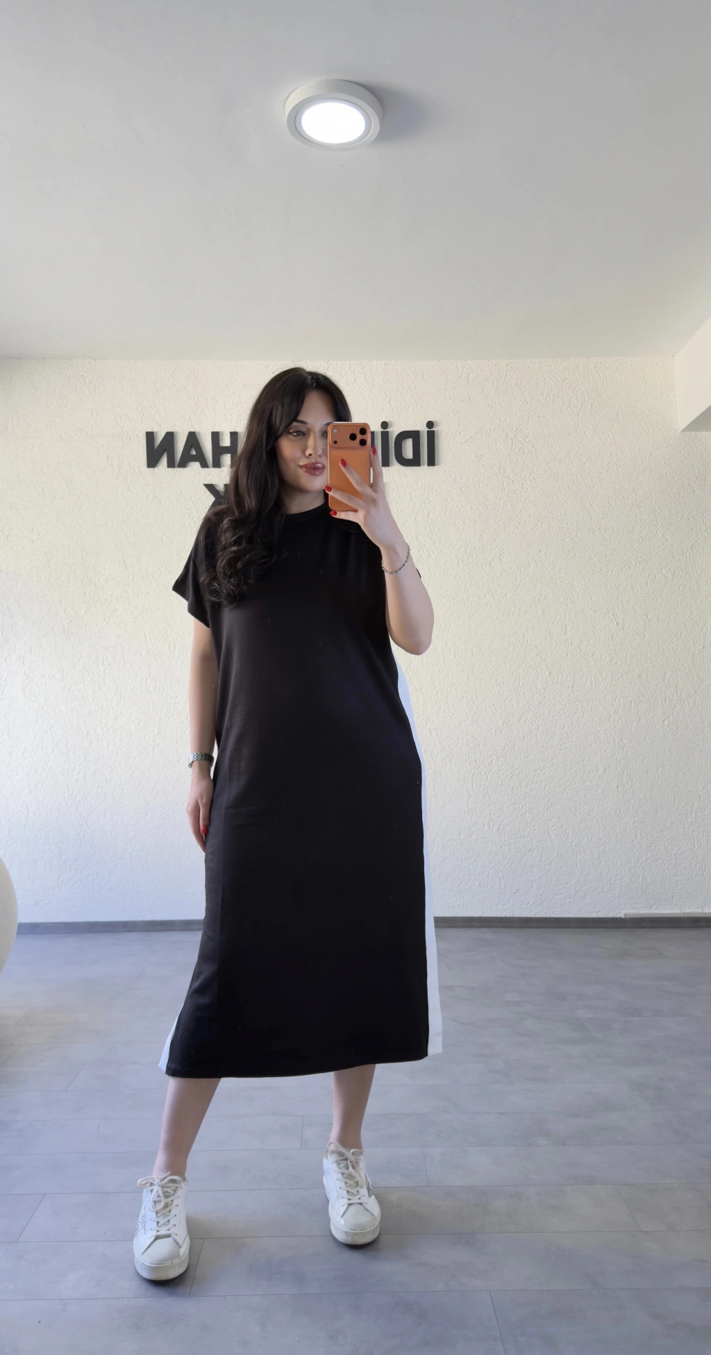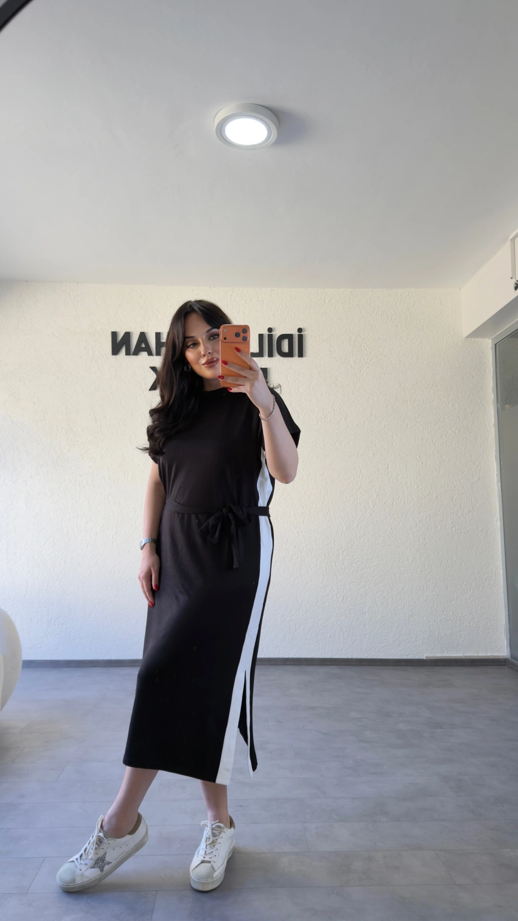 Kuşaklı Yan Detaylı Düz Kesim Uzun Elbise