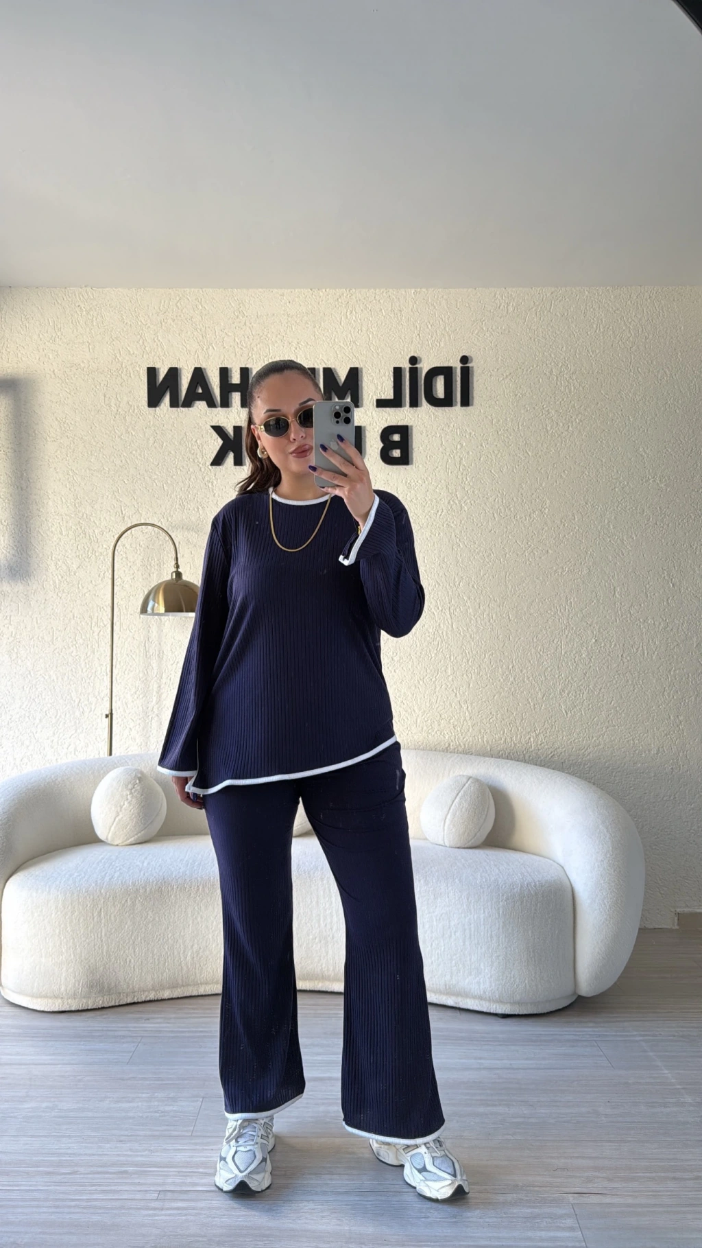 Lacivert Beyaz Şeritli Asimetrik Takım