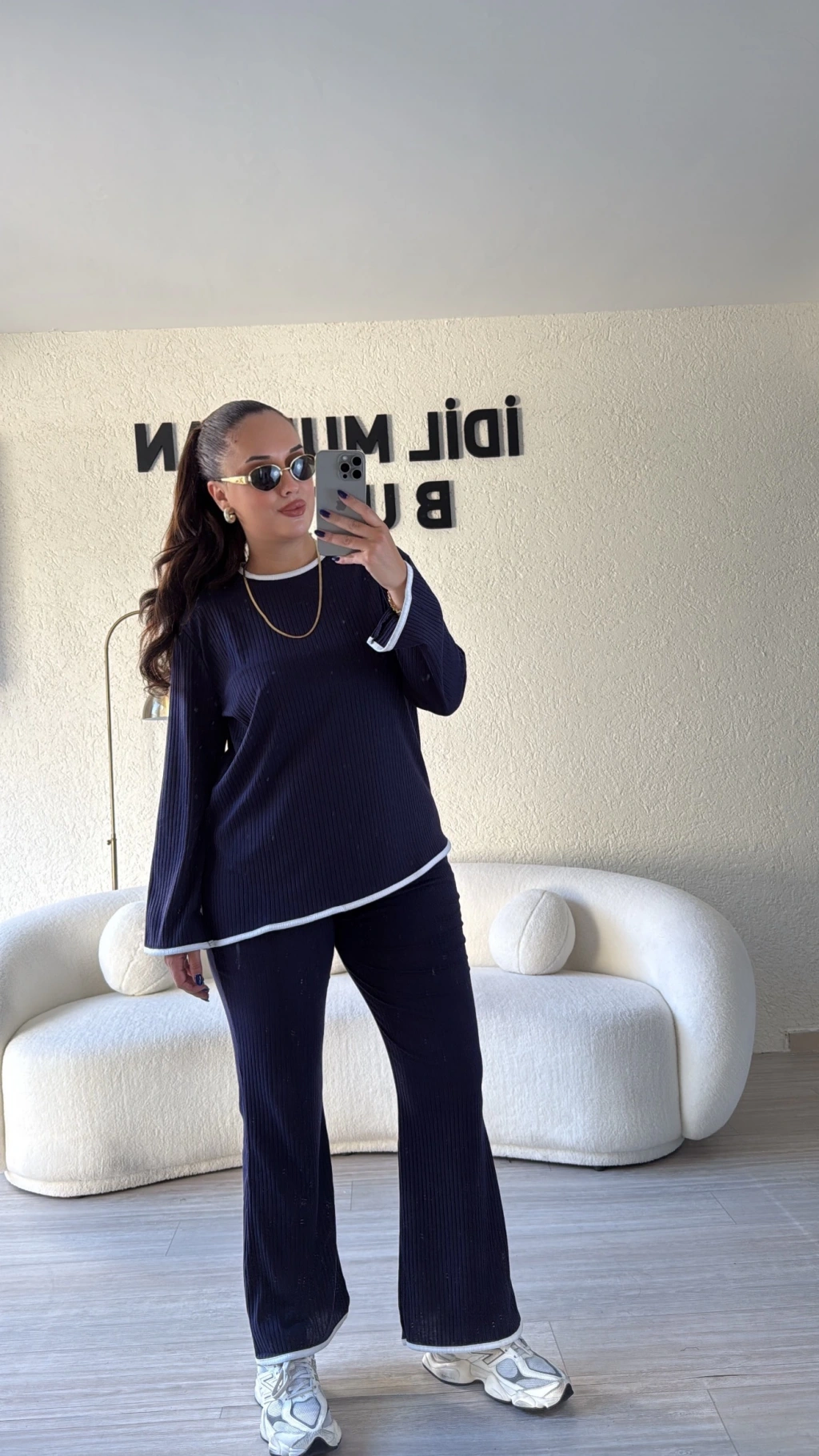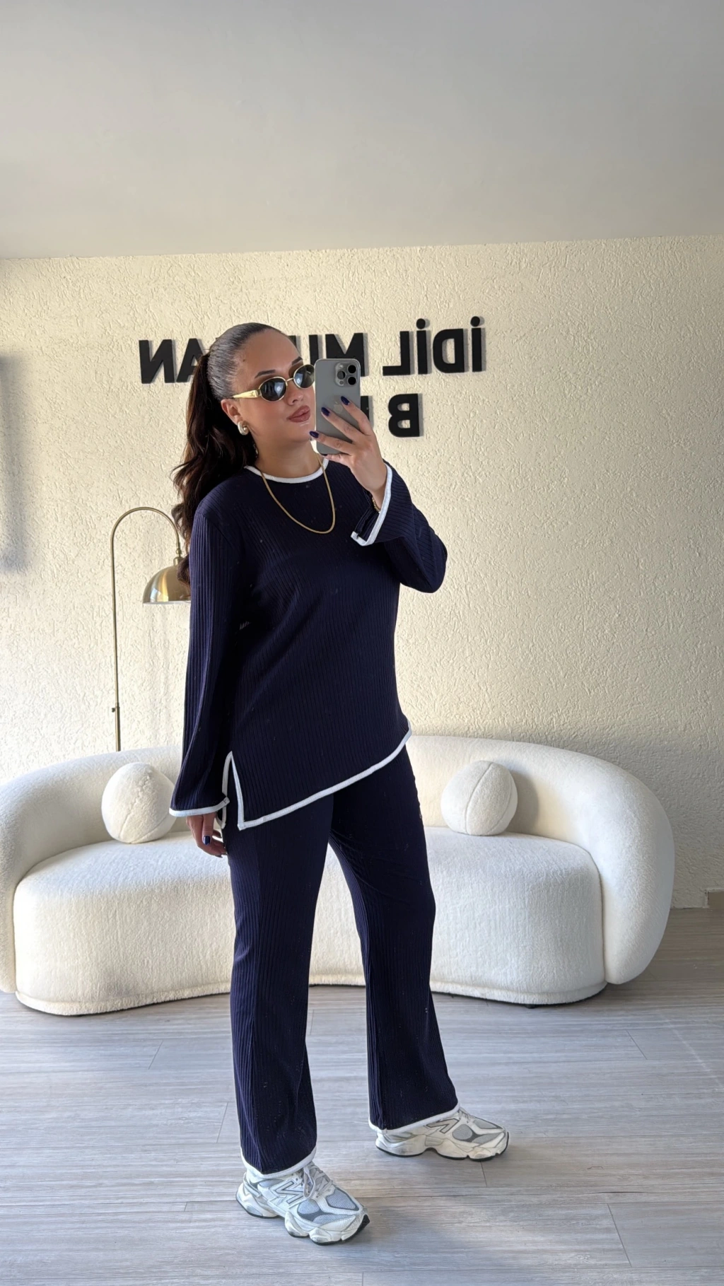 Lacivert Önü Çizgi Detaylı Pamuklu Takım