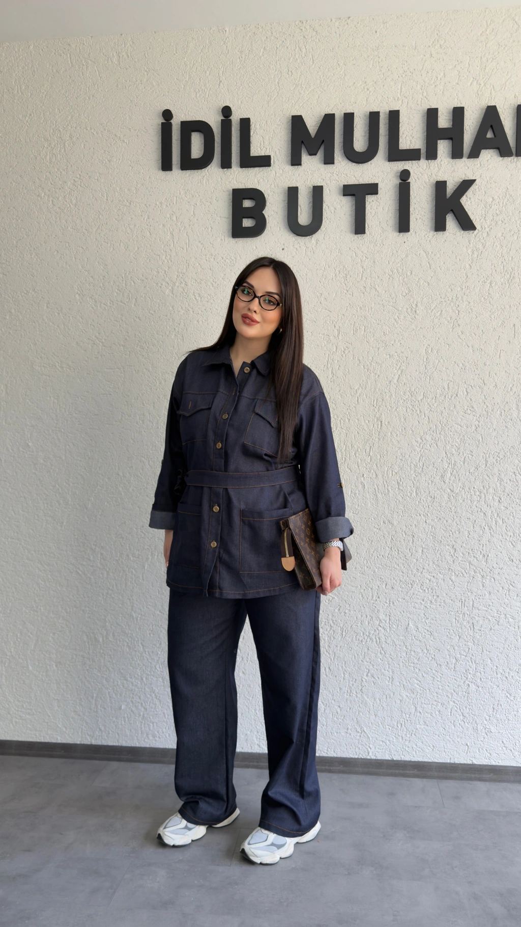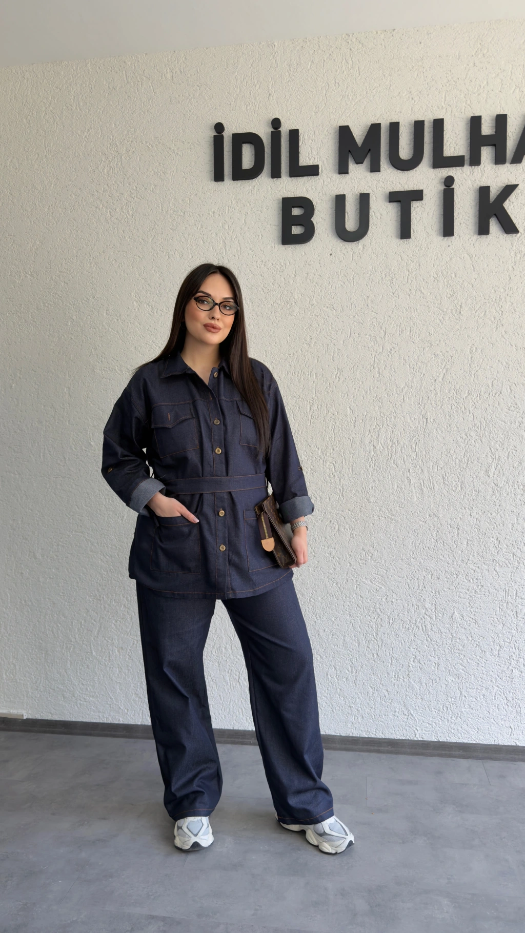 Siyah Düğmeli Kemerli Jean Takım