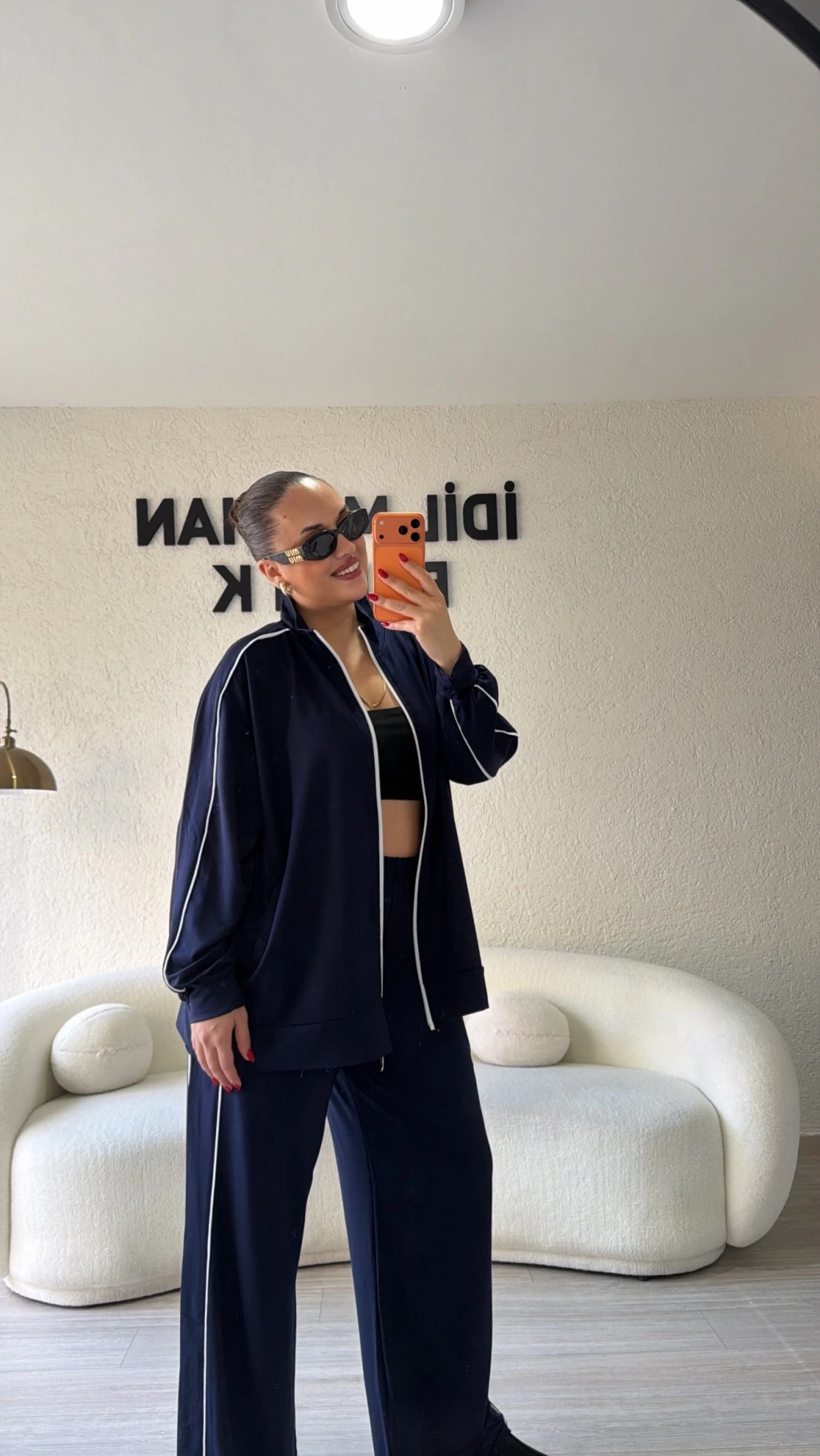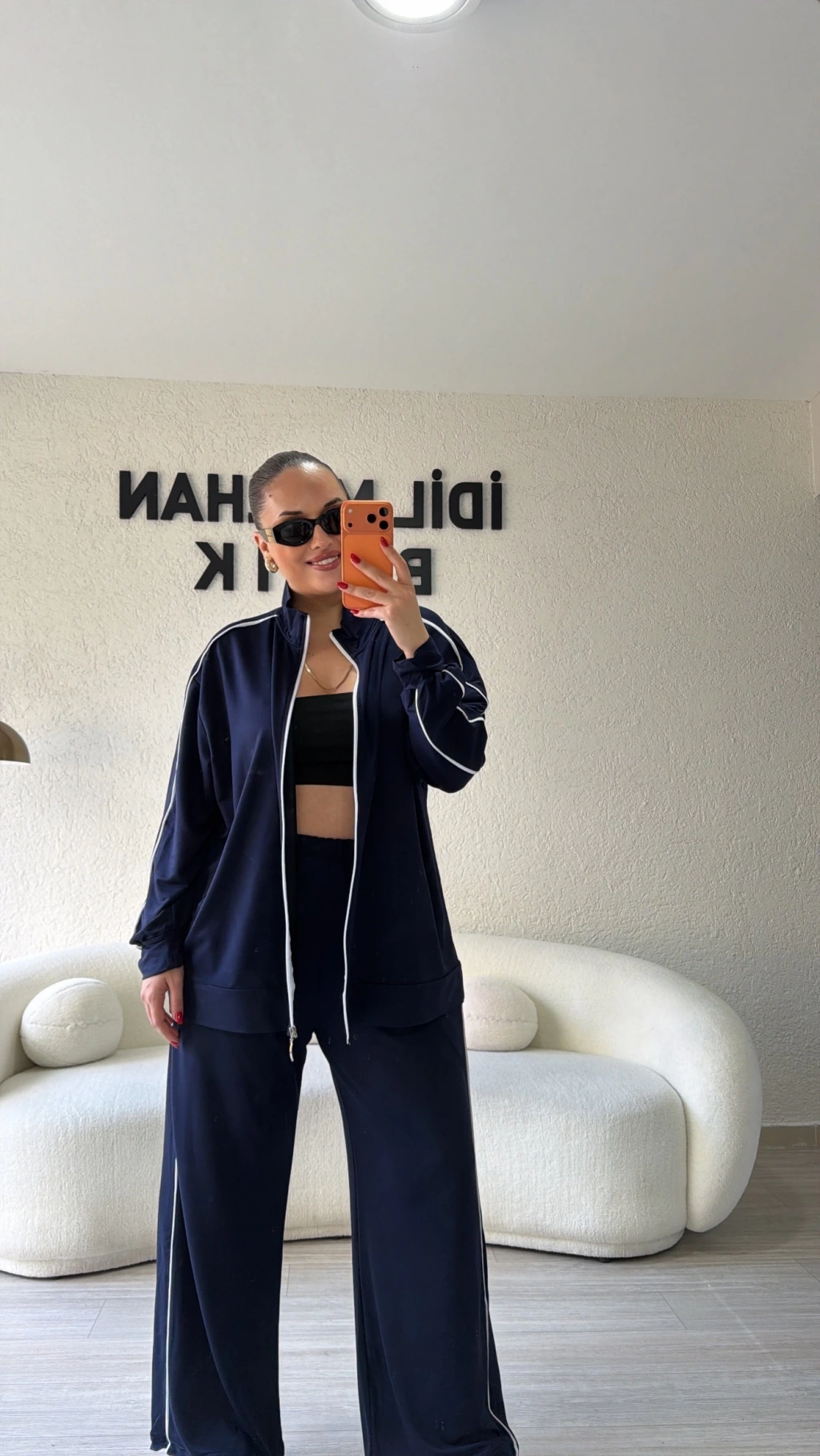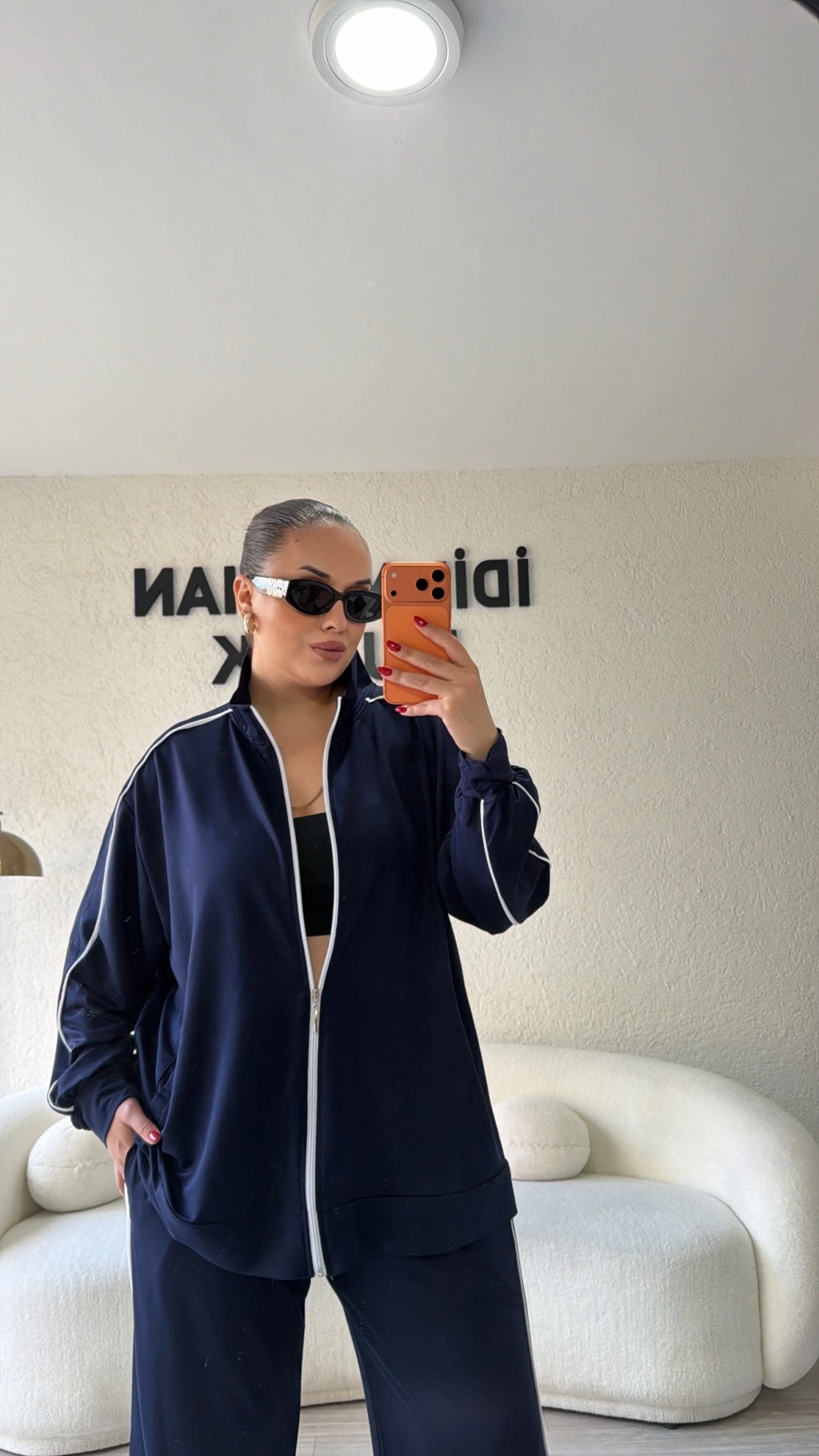 Lacivert Fermuarlı Çift Çizgili Takım