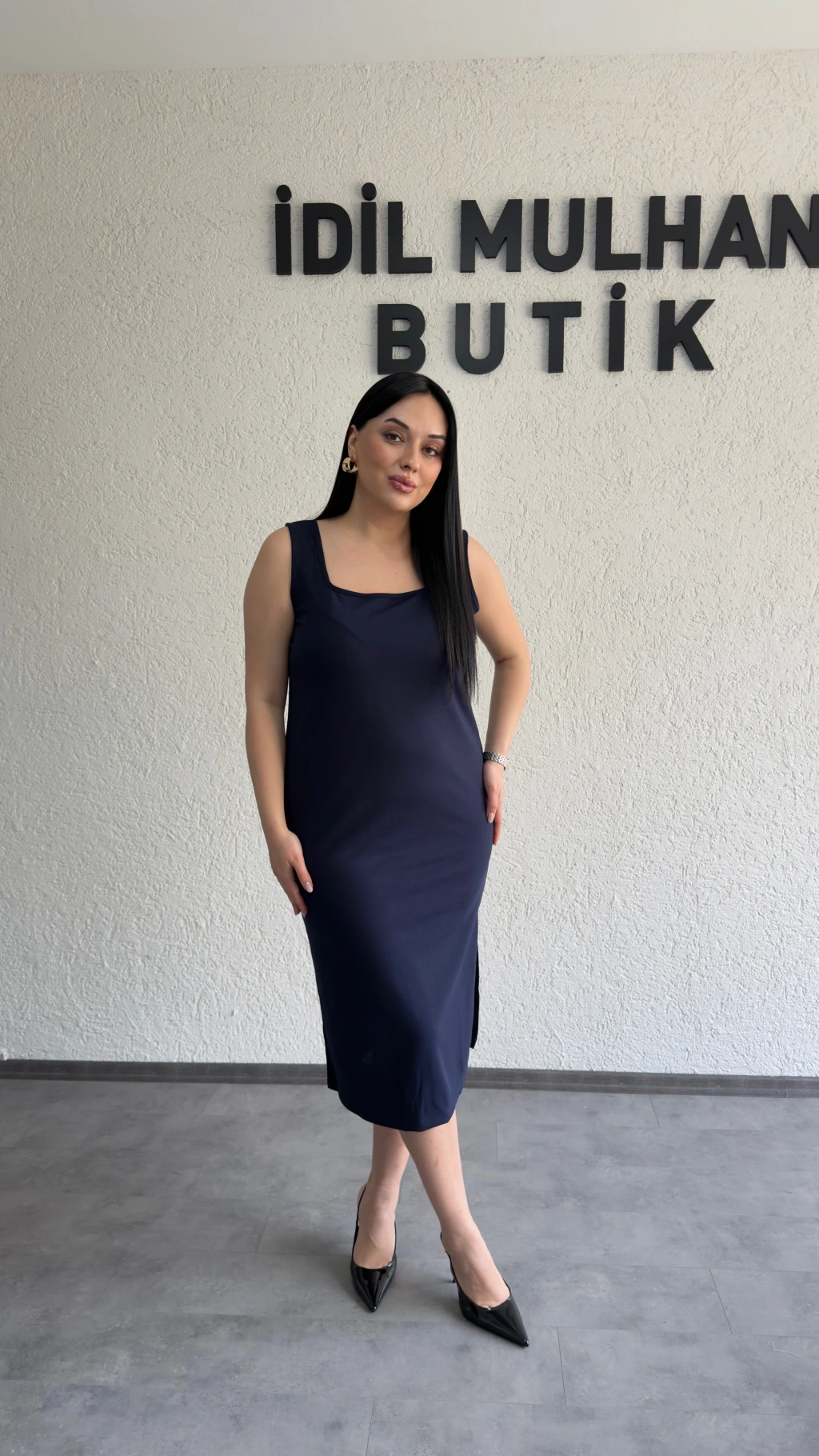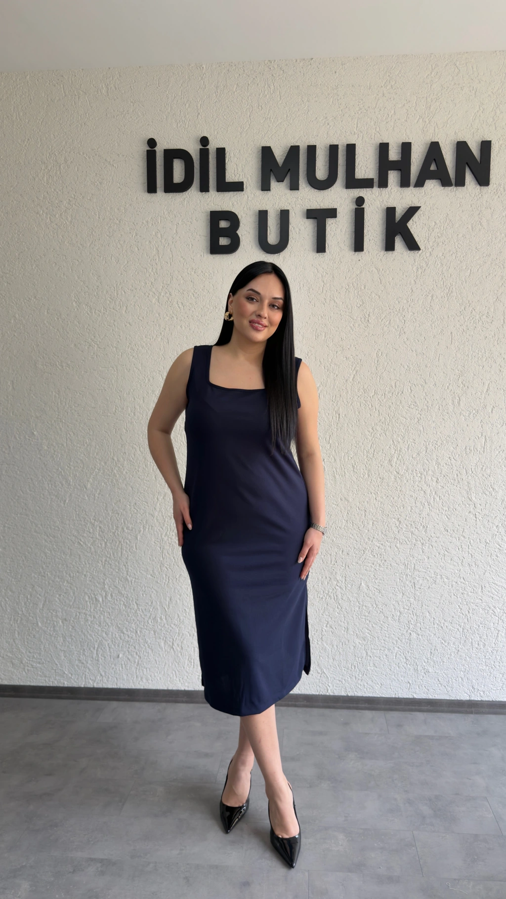 Lacivert Kruvaze Yaka Kat Kat Elbise
